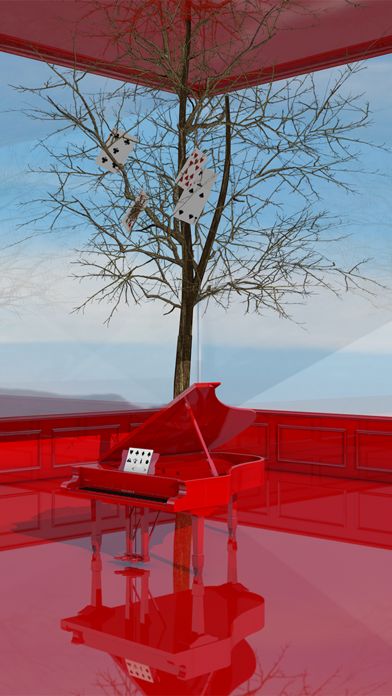 A large amount of water, huge chess, three pianos, one tree...