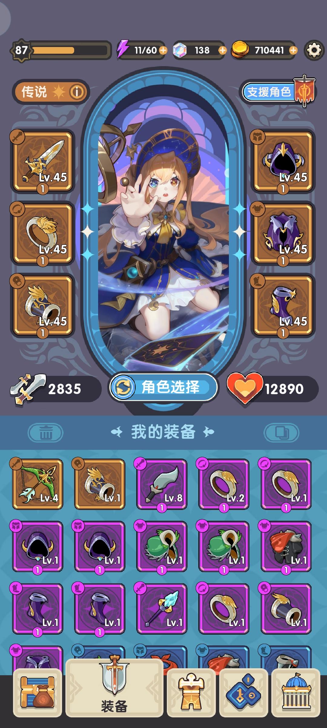 闲着也是闲着 写个新手攻略.仅对新手有效. 一.新玩家 新玩家第一次打开游戏只有一个勇者,勇者的技能斩击需要手动控制方向,只能向左右两侧攻击,范围也不大,属于比较鸡肋的技能,很多新手都因为勇者不好用开局就卡关,我是卡在第三关。这点我个人建议买个6元的舞女礼包,舞女的属性高,初始技能伤害高距离远,可以有效度过前几级,抽到好用的技能就能打过了。或者不氪金,那可能就比较要求运气.前几级赶快抽出一些稳定的