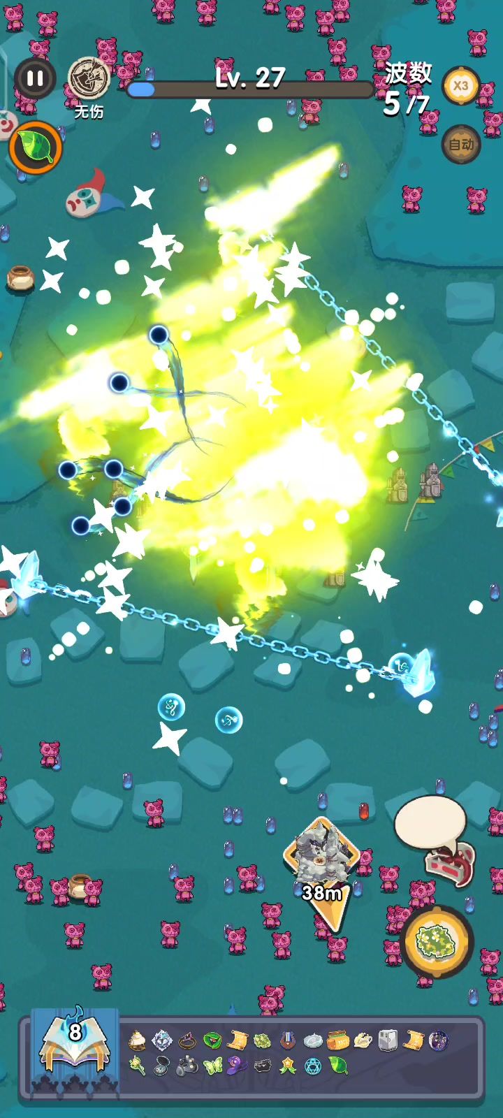 众所周知,妖精是一个残疾角色,无专属密保,秘技也是搬的知更鸟秘技贴图。今天悄悄更新了新的密保,s密保为伤害翻倍,数量+4。a密保为数量+2,还有一个没测出来。捡到+4密保奥义后就变成全图巨大化打击。