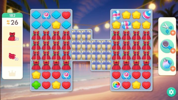 关卡内容上,没有《开心消消乐》关卡内消除积分与三星或彩星的评星机制,其余方面则趋同,仍会有场外道具选择与连胜机制Buff、特殊方块消除效果、方块自由下落后随机消除的爽感等,随主线前进关卡机制也不断增多;