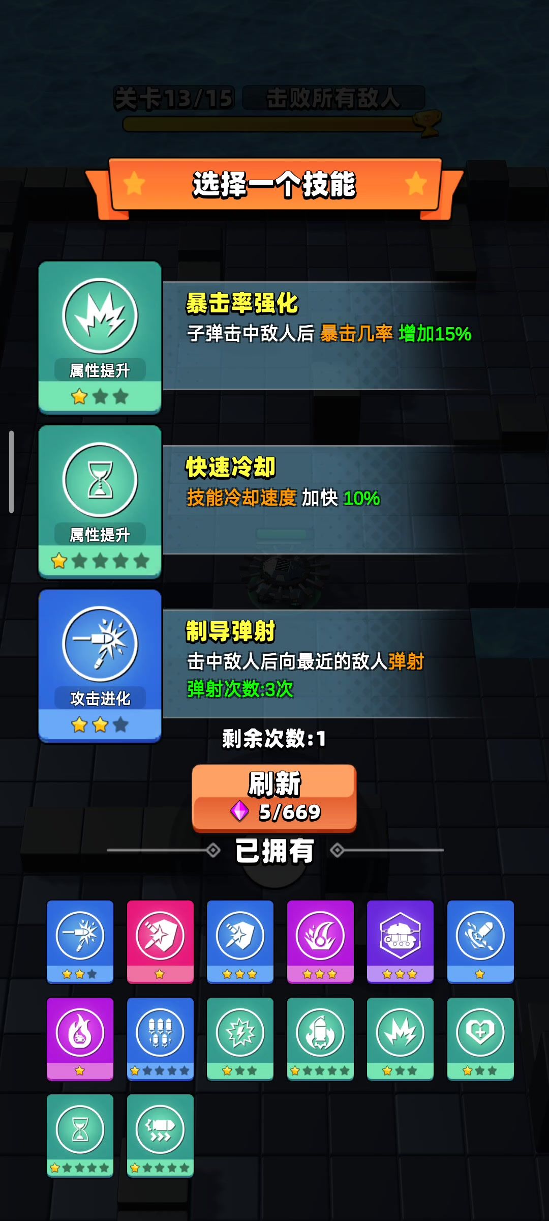 经典,还是得坦克大战😌前几关机枪就简单无脑了环射看着一般般,用起来是真的香啊,碎片还贼便宜。强化没必要选些花里胡哨的,个人偏爱子弹等级、连射、攻击、攻速、回复,其它就随意喽另外,双手按住可以加速移动一段时间现在测试版本,直接跳过广告,纯爽版本😆