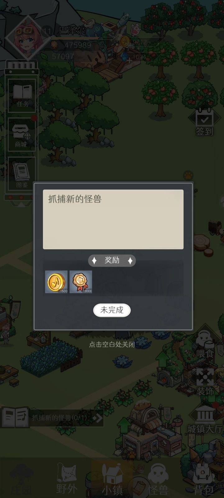 喂养了某只怪兽之后,就无限bug了,饮料店8级满经验之后就点不进去了,挂机地图别推太快,可以挂机刷进化石头,我三种石头都刷了十几万了,第一张地图忘记是哪一关出大量蛋壳,第二关的方块怪有一关会大量掉绿色进化石和金币,第一关有一关会大量出黑色和绿色进化石,第三关过了第二个大关卡有一关会大量出黄色进化石,市政厅任务要多做,辉石全靠他,挂机地图每一个BOSS关卡过了之后,每天都可以免费扫荡三次,出辉石和技