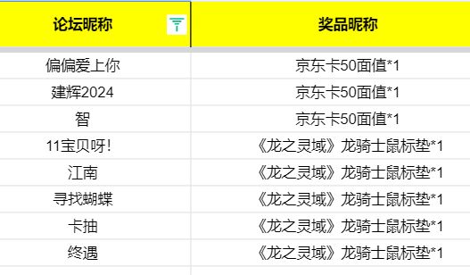 大家好,感谢大家积极的参与本次活动,现将活动中奖名单公布如下↓,没中奖的友友请不要气馁,多关注论坛最新活动公告,祝大家游戏愉快。恭喜以上玩家获得活动奖品,请于12月5日11:59之前主动添加进并填写问卷登记。https://docs.qq.com/form/page/DSlBuQ2FZRkdEdnJF提交问卷后【加入兑奖:957220290】我们会根据留言时间进行处理,请关注群里通知和私信。