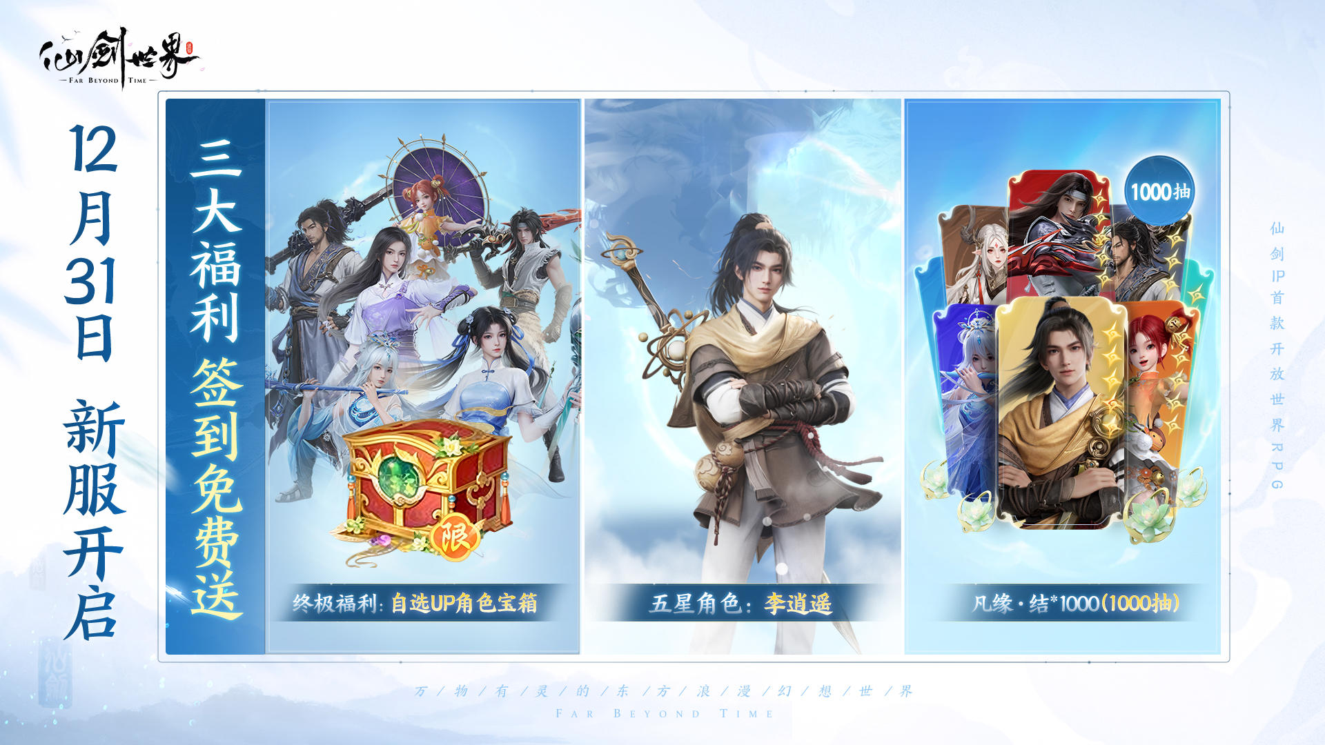 一念通天,万境归心;双域启幕,仙缘再续!天地有灵,雪落成诗;青鸾振翼,天门初开!《仙剑世界》已于2025年12月31日10:00正式开启【雪景见天】、【青鸾寻仙】两大新服。诚邀诸君共赴六界,执剑问道,踏雪寻真,回梦游仙,再次踏上情与义的宿命之旅!新服专属礼包码:来仙剑世界畅玩新服新服盛典 · 专属活动第一重:登录有礼,千抽&五星角色任选!初入江湖,怎能没有厚礼相伴?新服开启后,只需轻