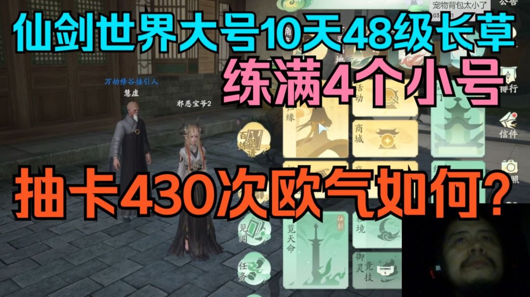 仙剑世界大号10天练到48级长草,练满4个小号抽卡430次欧气如何?