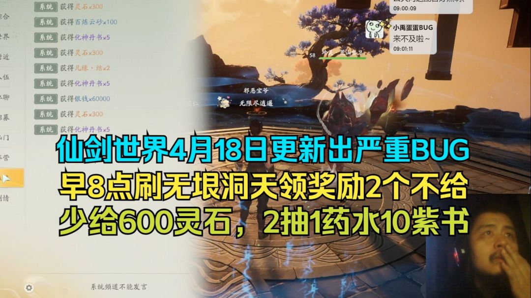 仙剑世界4月18日更新出严重BUG,早8点刷无垠洞天领奖励有2个不给,少给600灵石,2抽,1体力药水,10紫书#仙剑世界 #游戏 #游戏日常#游戏解说 #游戏杂谈 #游戏安利 #游戏推荐 #游戏讨论 #游戏资讯 #游戏实况