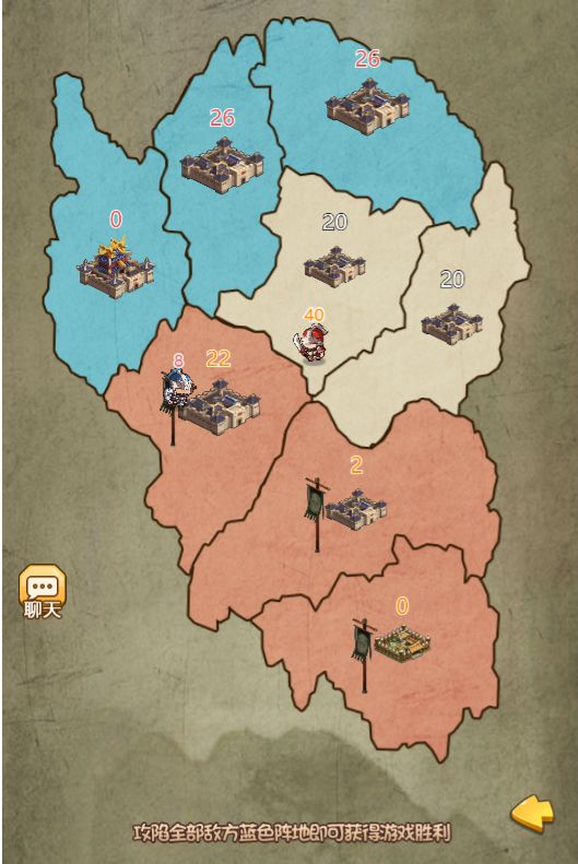 大家好呀,今天由我来给大家介绍游戏的攻城掠地玩法。攻城掠地玩法有丰厚的元宝、铜币奖励,各位主公快来和我一起探索吧!攻城略地是一种轻松的策略性玩法,主公需滑动屏幕控制城池中的我方军队去攻占敌方城池或中立城池,攻占的城池城内士兵数量会不断增加,玩家在前期兵力薄弱时可考虑攻占更多守军较少的城池来获得征兵优势,每当一方完全消灭对方后游戏结束。 每次通关均可活动大量铜币、元宝奖励,凭借各位主公的聪明才智