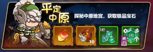 大家好呀,今天由我来给大家介绍游戏的一个重要玩法—平定中原。平定中原是一种路线通关的玩法,在通关路线上玩家会遇到强度不同的敌军、援助我方的友军、贩卖道具的商人以及为玩家恢复治疗的医者等等,玩家可根据自身实力及需求选择适合自己的通关路线,击败越高强度的敌军可获得的奖励也越丰厚哦。 击败守军可获得随机宝石并进行战利品选择,不同的战利品可为阵容提供不同属性加成,主公根据自身阵容情况选择合适的属性加成