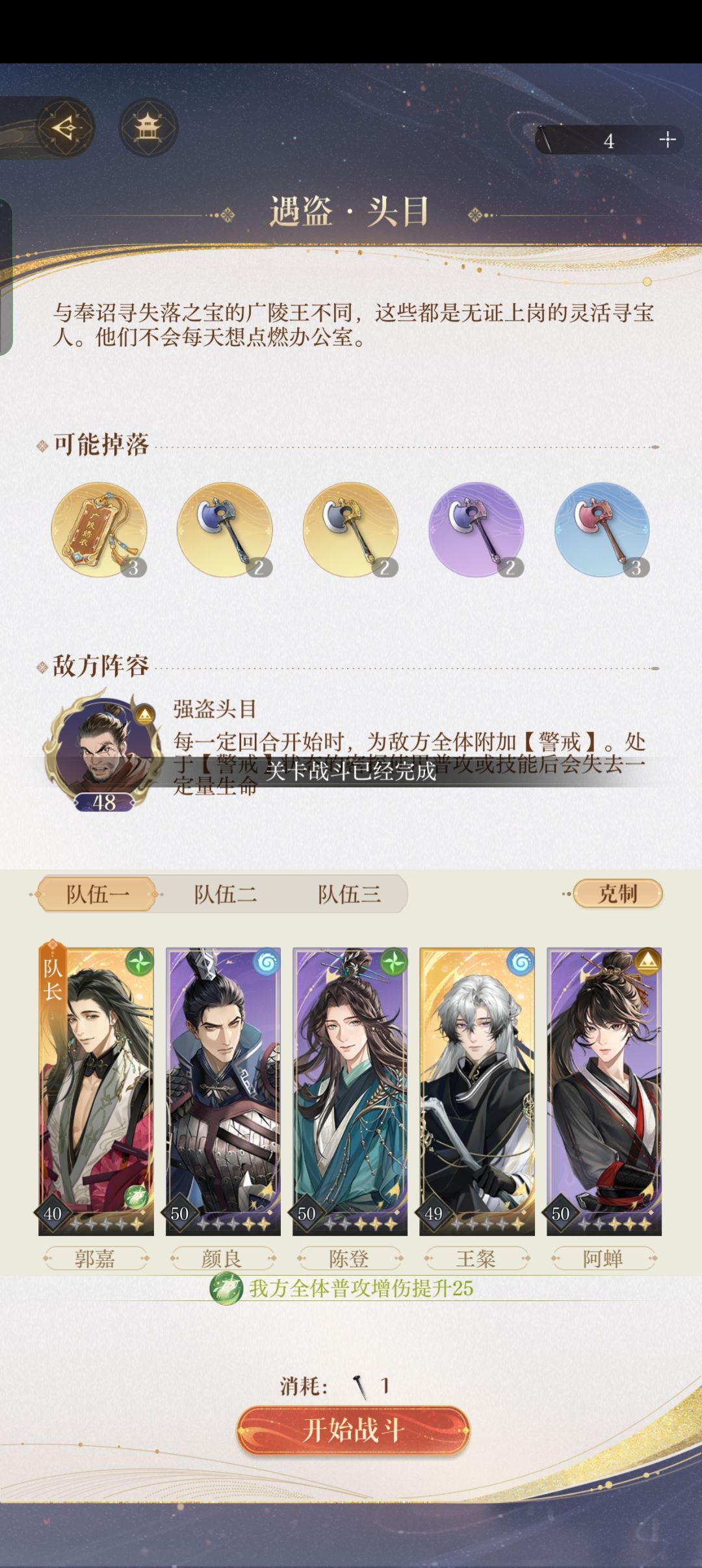 一星马超,一星香,四星史子眇,三星权(不一定要三星),觉醒陈登。 马超、史子眇、陈登70+11,香香75+12,权60+9 香香攻击4800左右,马超攻击3700左右即可。 无觉醒陈登应适当提升香香或马超练度。 #如鸢 #如鸢攻略