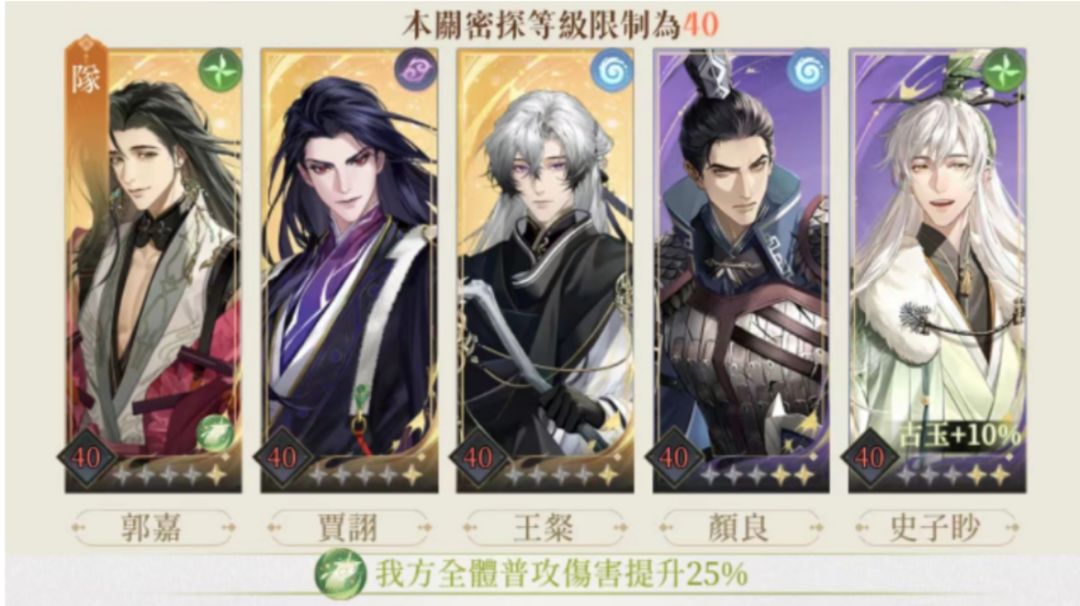 普攻郭嘉先手,贾诩后手;放技能郭嘉后放,贾诩先放,跟普攻反过来 4n回合颜良放大,其他人拉防。 4n+1回合史子渺放大,颜良普攻,其他人拉防 王粲放大比较随意,主要看当前队友血量,别被单体攻击打没了,注意不要在4n回合放大