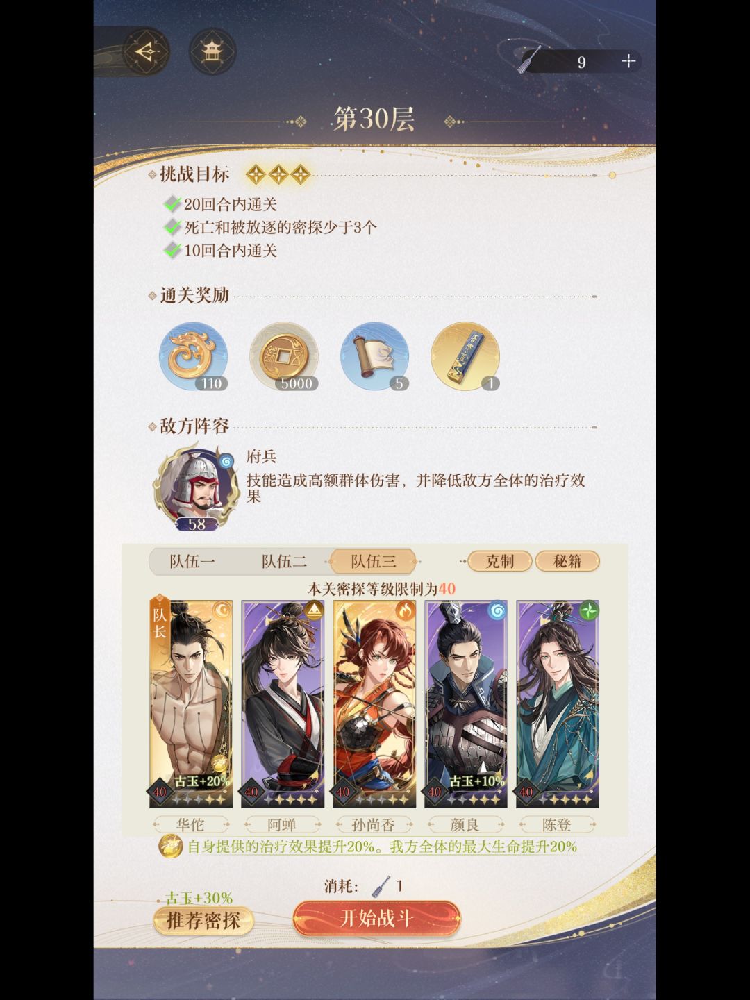 无香过 如鸢『地宫一期』55层 3星通关阵容
