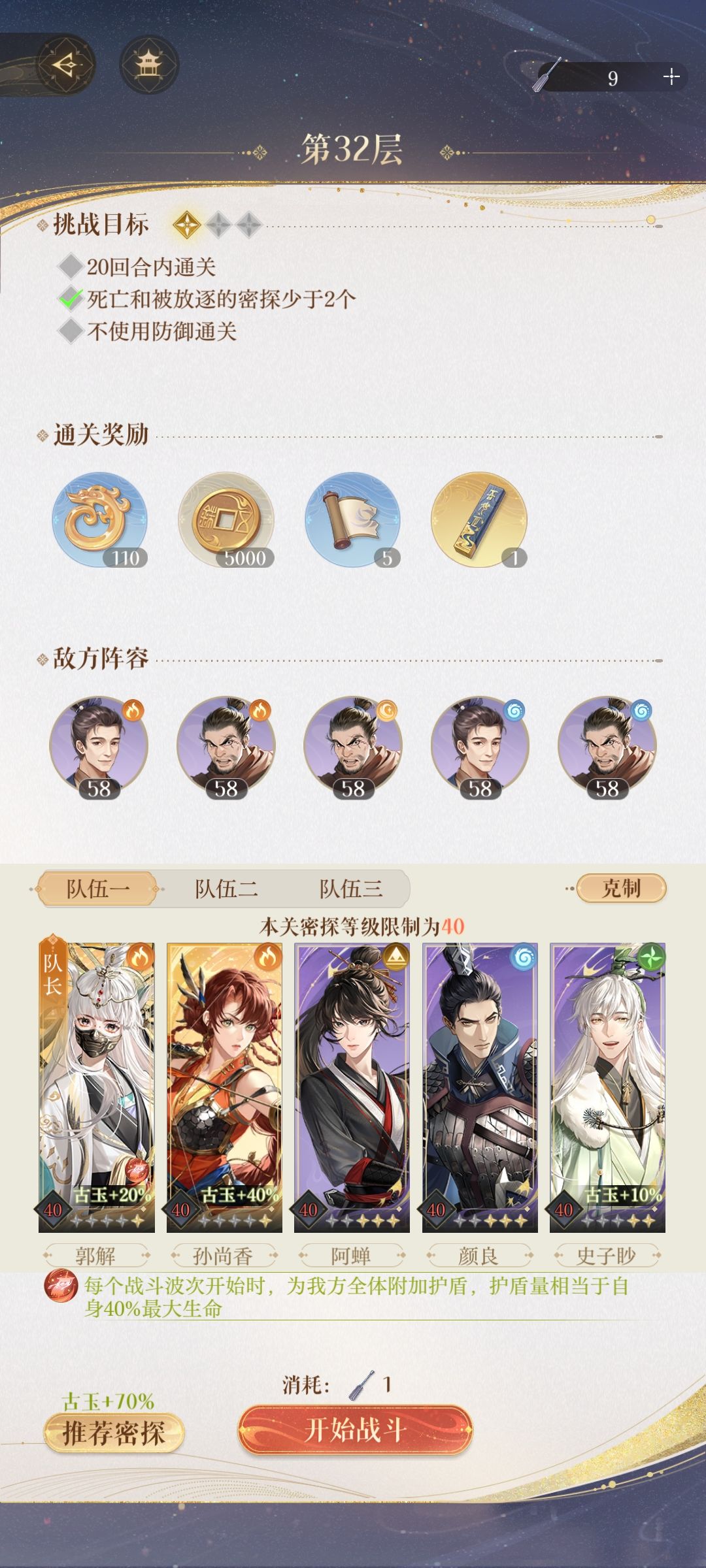 如鸢『地宫一期』50层 一星通关