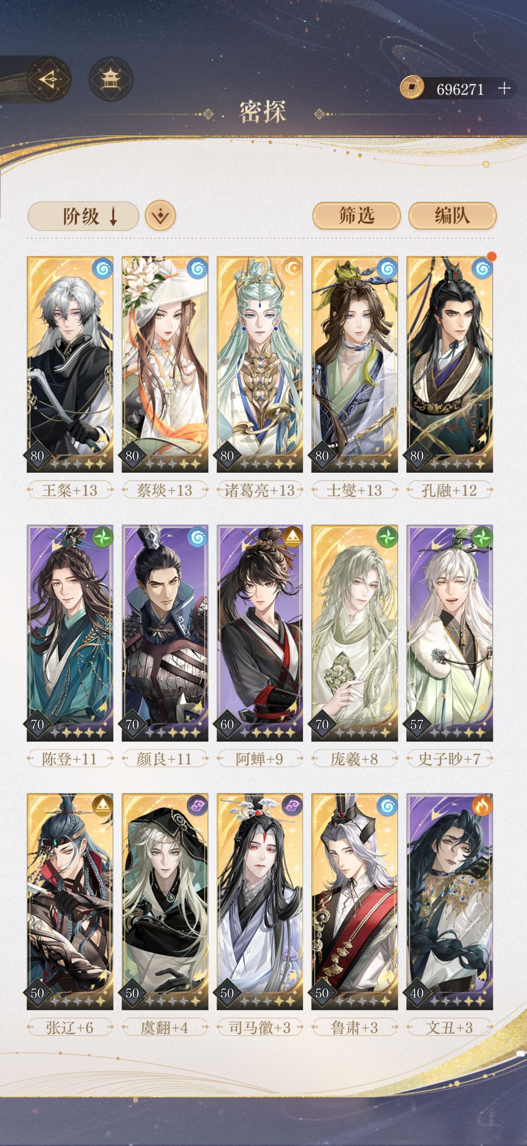 ◇阵容见图一,练度见图二。 ◇因为杨修输出有浮动,如果不过就多刷两次,我是这个阵容第二次刷就过了。 ◇马超命盘一定要以守为攻(图三),且攒够5层冲劲就防御。 ◇【重点】第九回合开始时Boss血量基本压在7.5w左右(图四),就可以过关了。 ✭7.5w可以保证你在11回合一定打出盾,且这时候Boss还没有放技能就不是防守状态,盾下血会比较快!!! 【题外话】 ◇本关不推荐孙权,孙权+6兰台诛仙阵10