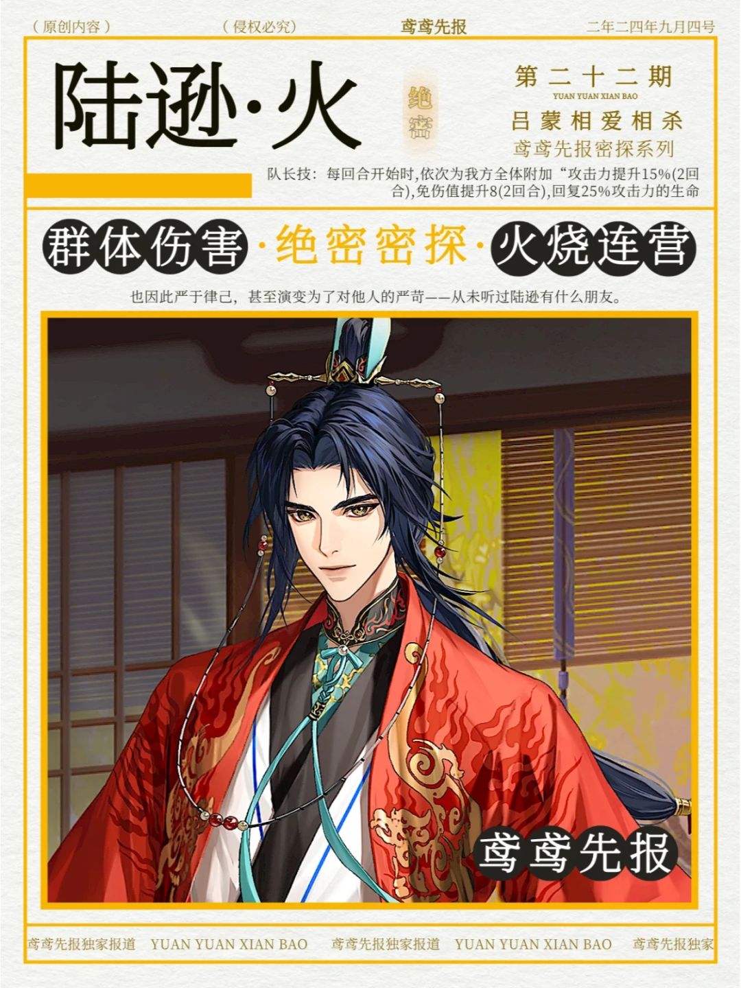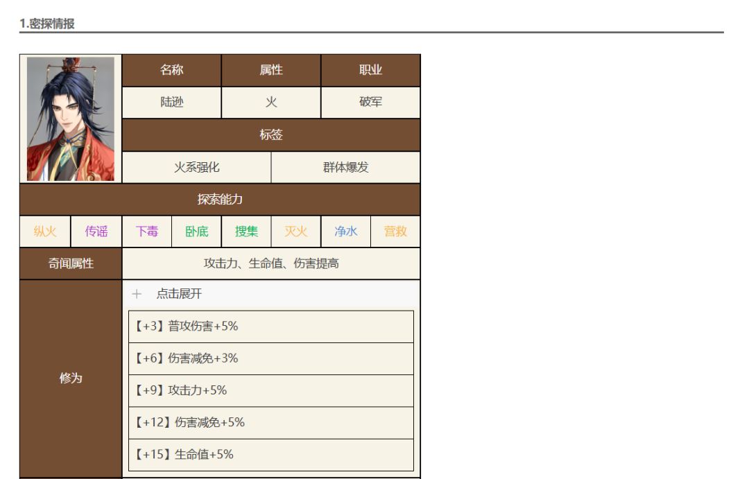 如鸢密探【陆逊】角色图鉴分享!