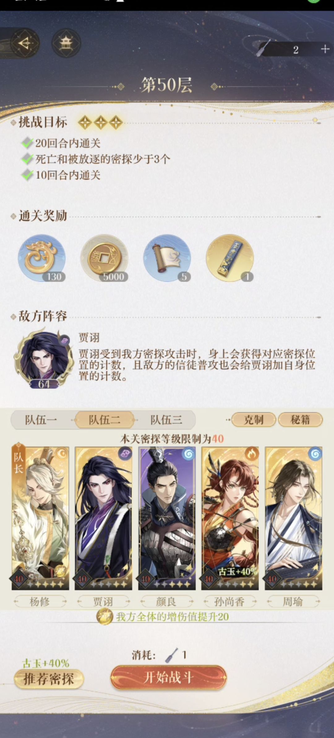 一、核心思路: 1. boss开大前三回合,文丑当队长迅速开大,孙尚香普攻补刀,直到清完小怪,文丑毕业,后面必保C孙尚香,她大招一刀一万血。赌她不死,死了重开。 2. boss开大时全员防御,残血也防御,有盾要留到boss开大用,颜良时刻记得普攻加上全员盾。有机会就补血。 注:共用血条时,文丑不能开大,会一起掉血。 二、练度: ‼️孙尚香命盘一定要洗到【普攻变为群攻伤害】 (我洗到最后花白金币买的