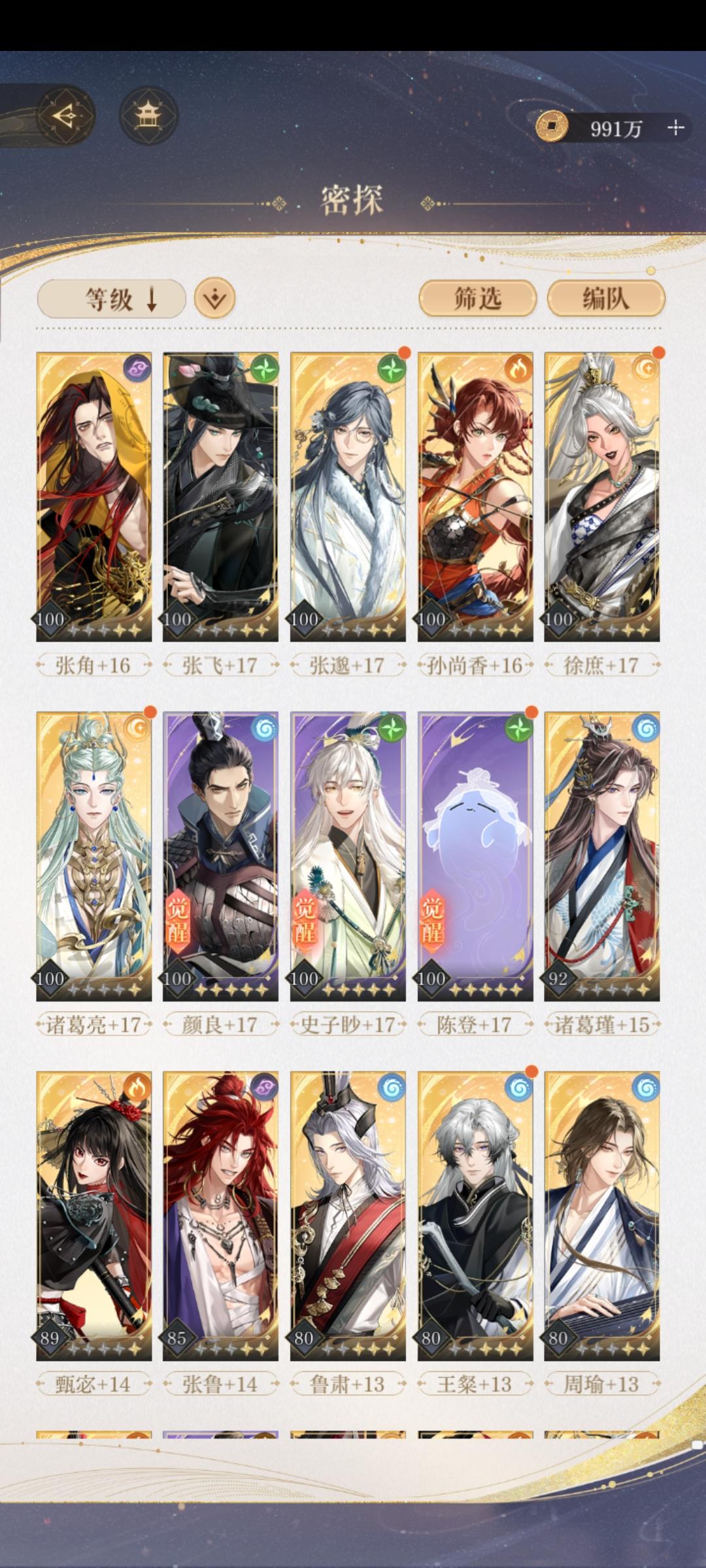 王粲:人权卡,分摊伤害能力超强,推荐培养到90级。王粲的群体治疗和平摊伤害技能在中后期战斗中非常关键,可以大幅提升队伍的生存能力。 史子眇:实用奶妈,奶量足,建议培养到80级。史子眇的治疗能力非常稳定,无论是单体还是群体治疗都能满足需求。 颜良:T0盾爹,后期也是万金油,推荐培养到90级。颜良的护盾和嘲讽技能可以吸引敌人的火力,保护队友免受伤害。 孙尚香:火C,暴击高,后期可与安期组队,值得培养。