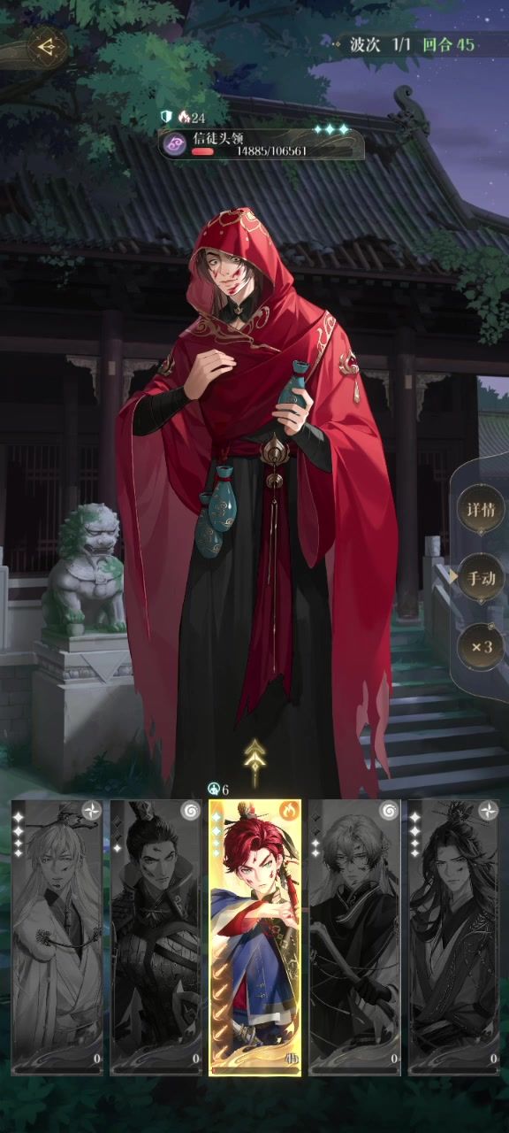 郭嘉属性克制boss,既不容易死,伤害还高,我40+4的郭嘉比50+7的阿婵伤害高,其他人普攻还有几率协战。 我练度一般,打了好多回都差伤害,有次杨修一局摇出来两次双6都没过,输出还老是死在狮子喵和陈登前头。 我看风属性的这么能活,一怒之下把阿婵换成了郭嘉,谁知道一次就过了。 还有就是boss第一回合放大不用全部下拉防御,有大放大没大普攻贪点输出,后面正常打就行。