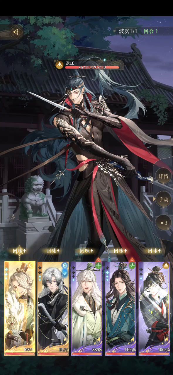 普攻郭嘉先手,贾诩后手;放技能郭嘉后放,贾诩先放,跟普攻反过来 4n回合颜良放大,其他人拉防。 4n+1回合史子渺放大,颜良普攻,其他人拉防 王粲放大比较随意,主要看当前队友血量,别被单体攻击打没了,注意不要在4n回合放大