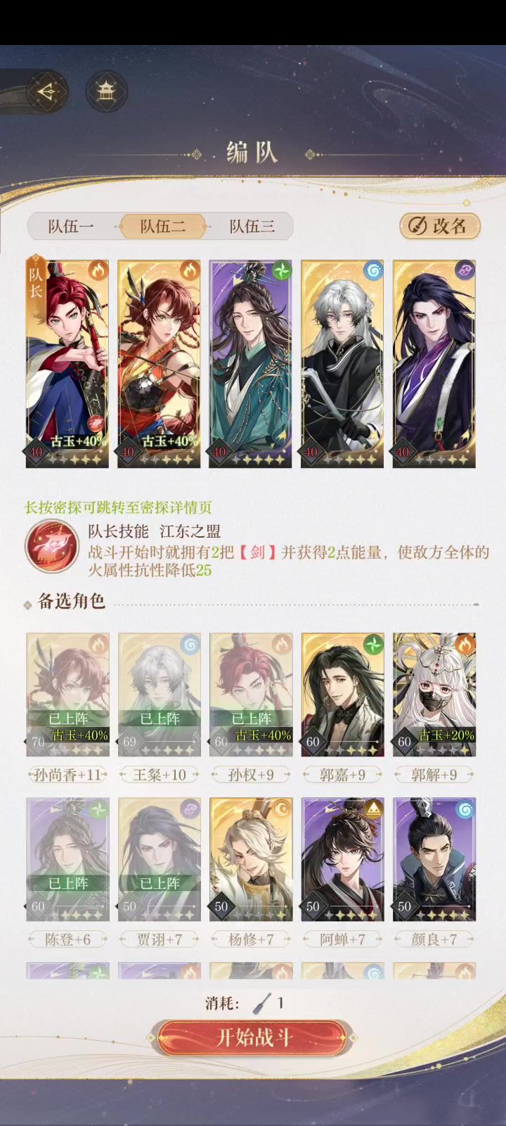 没王粲连线,没郭解大盾,不得不把严白虎养了起来,40+3,刚好够用。 孙权洗出受击减伤、防御嘲讽减伤; 狮子猫洗出技能减伤; 陈登洗出初始能量加2; 颜良、严白虎没洗过。 最后只有孙权活到最后一刻,多段攻击带走对面4K血。 所以0星过了地宫40!接下来继续往前推!#如鸢 #如鸢国服 #如鸢攻略 #如鸢公测