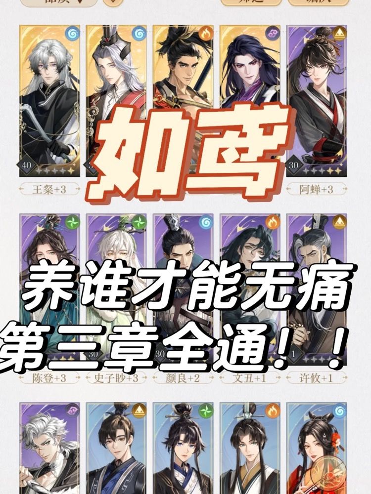 6小时激情通关1-3章的阵容分享! 除了第一章的固定内容外 只用p2的六位密探即可打穿前三章所有内容 1-6按照推荐顺序排列: ❤️王粲:永远的神!一定要抽到的开服最强卡,可攻可守,大招拉链子分摊伤害保命神技 ❤️阿蝉:初期最强收割机!极强的攻击力+无敌机制,无痛三刀连斩清理小怪 ❤️陈登:版本唯一拉条打火机!无痛对轴,调整回合数,让队友能提前开大的必养密探no.1 ❤️颜良:盾之神!大招