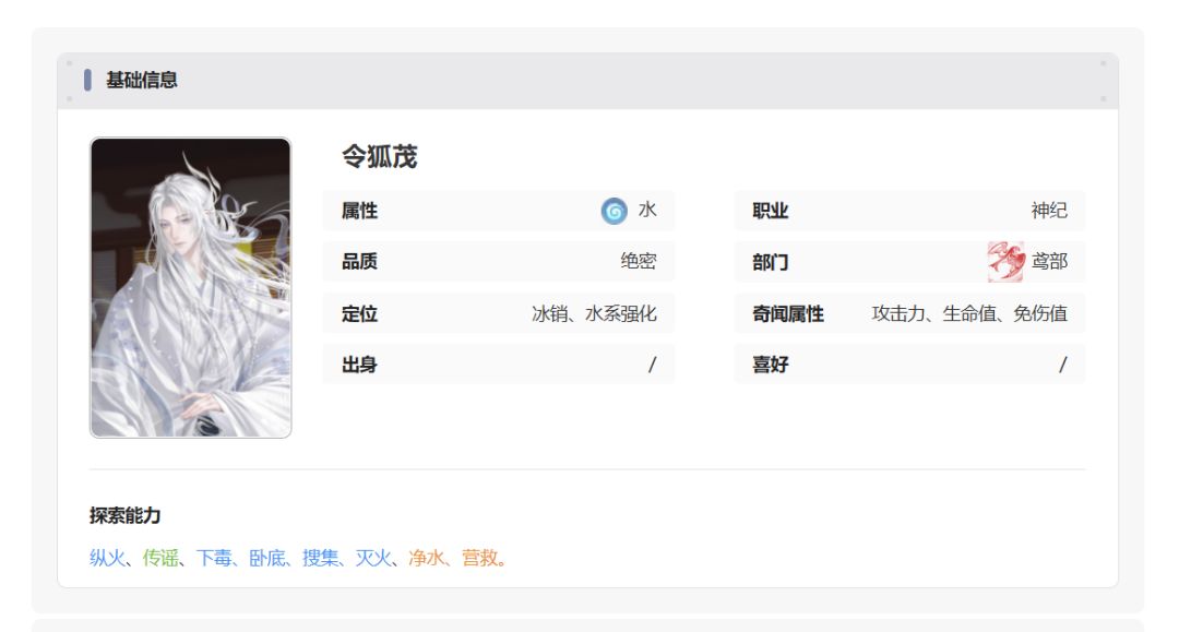 如鸢密探【令狐茂】角色图鉴分享!