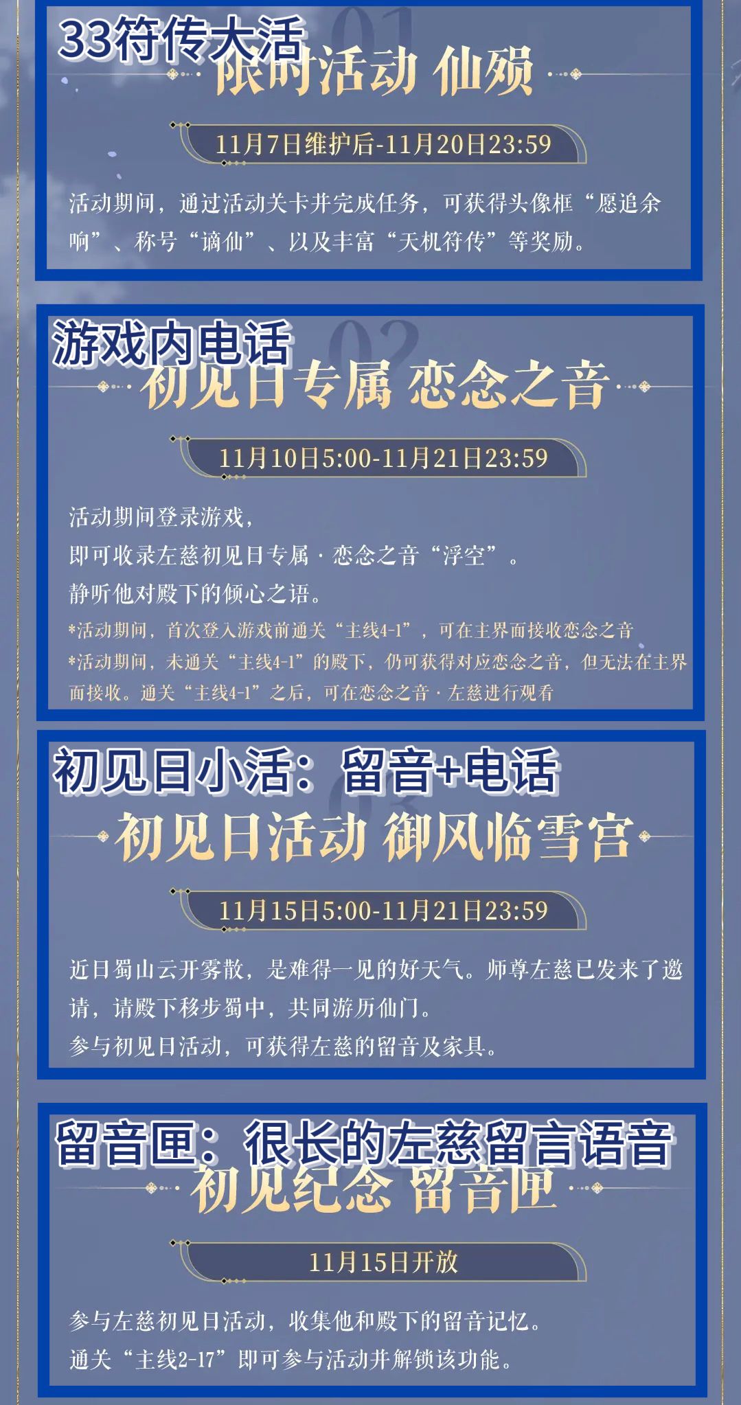 🌟主要奖励 家具,留音匣,日志,符传,升级材料。 🌟活动说明 1️⃣活动任务时间为七天,全勤一共可拿40➕120✖️7🟰880羽衣,一次出游花费10羽衣,出游次数88 2️⃣每天可用白金币购买羽衣30次,首次购买需50白金币(后面不知道会不会增加) 🌟建议 1️⃣拿完80次出行奖励和写生,不用额外买羽衣。 2️⃣如果需要集齐留音匣,需要点欧气,可视自身情况买额外羽衣。 3️⃣花200白金币