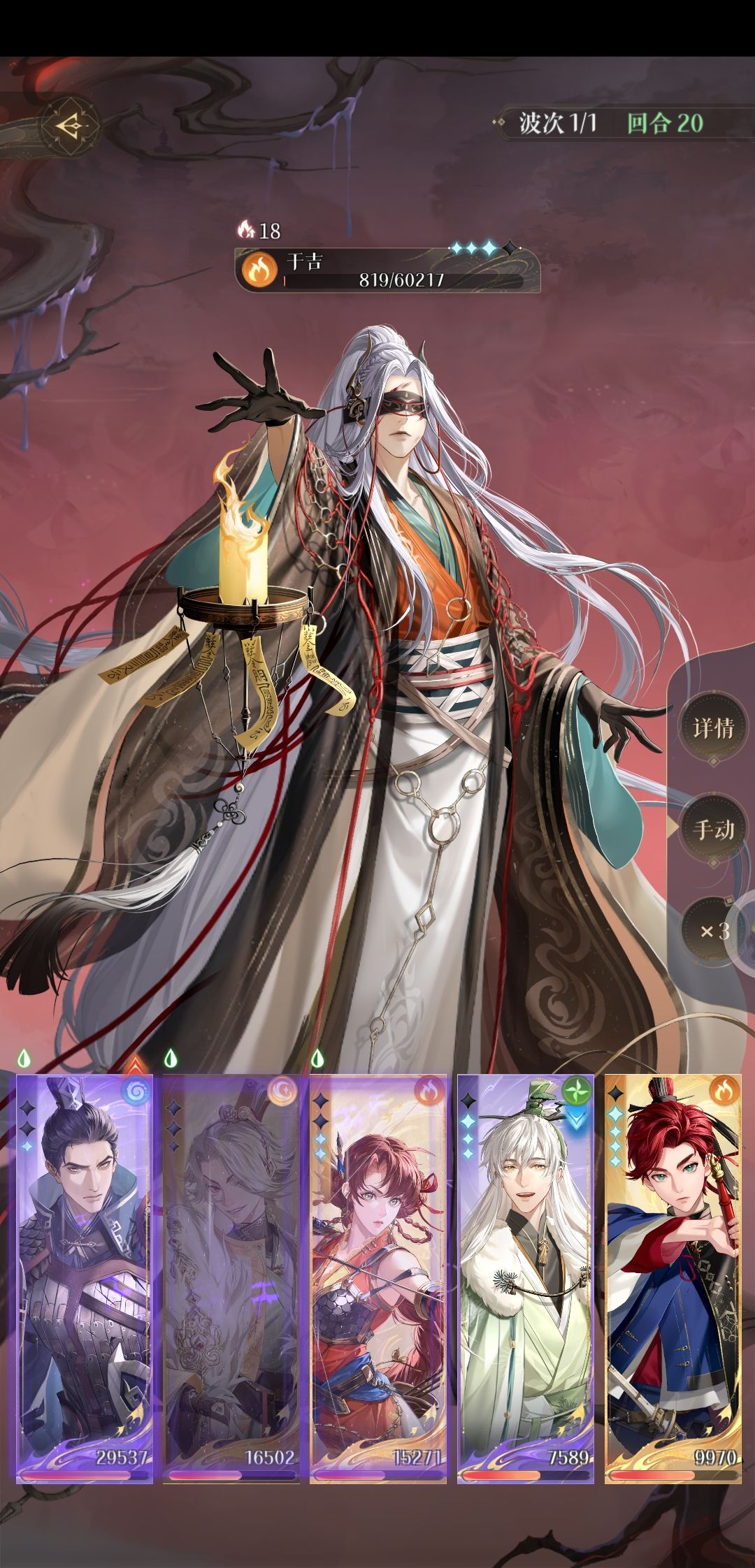 陈登当队长,一开始全打左边血量较低的小怪,鲁肃大招劝退右边小怪,没劝退就一直重刷,之后打boss,boss开大招的时候血量1700以下就没必要防御了 #如鸢