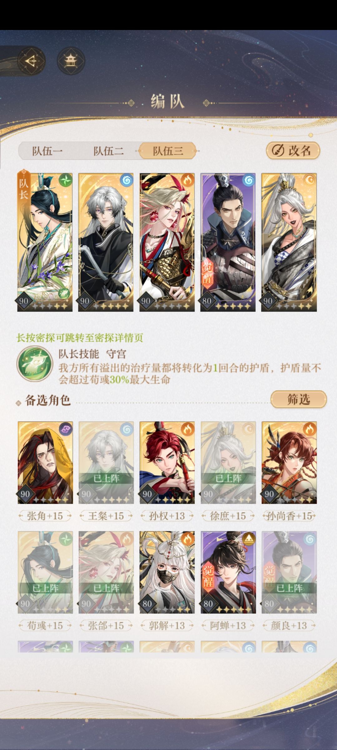 原理是带陈登,拿那个第一个行动的人能再动并回能的buff,在第三回合时等徐开完大后,刘开大,第四回合刘先时下拉两下再开大触发命盘,抗过后徐一直开大,第八回时卖掉陈刘二人(以防伤害不够)烈与盾都要开十