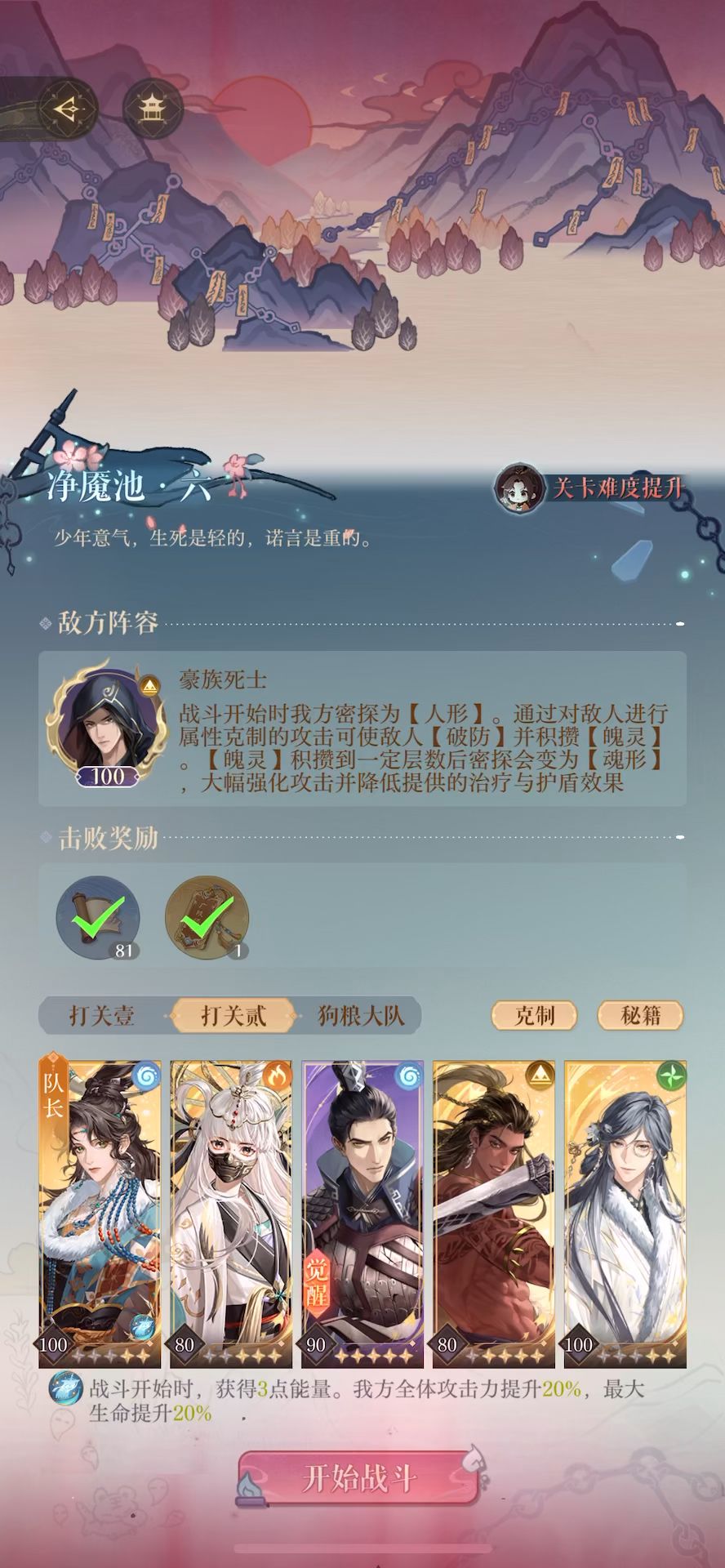 最后的最后还是打了 刘豹:100+17 大漠盘 郭解:80+10 普攻盾 马超:80+13已守为攻/出手法 张邈:100+17无晴盘 颜良:90+15生命大幅/攻击恢复生命