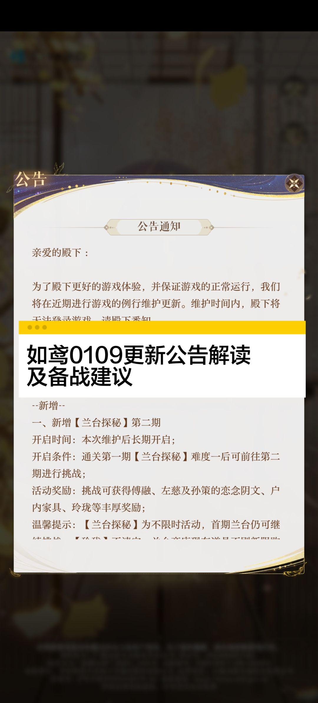 如鸢0109更新公告解读及备战建议