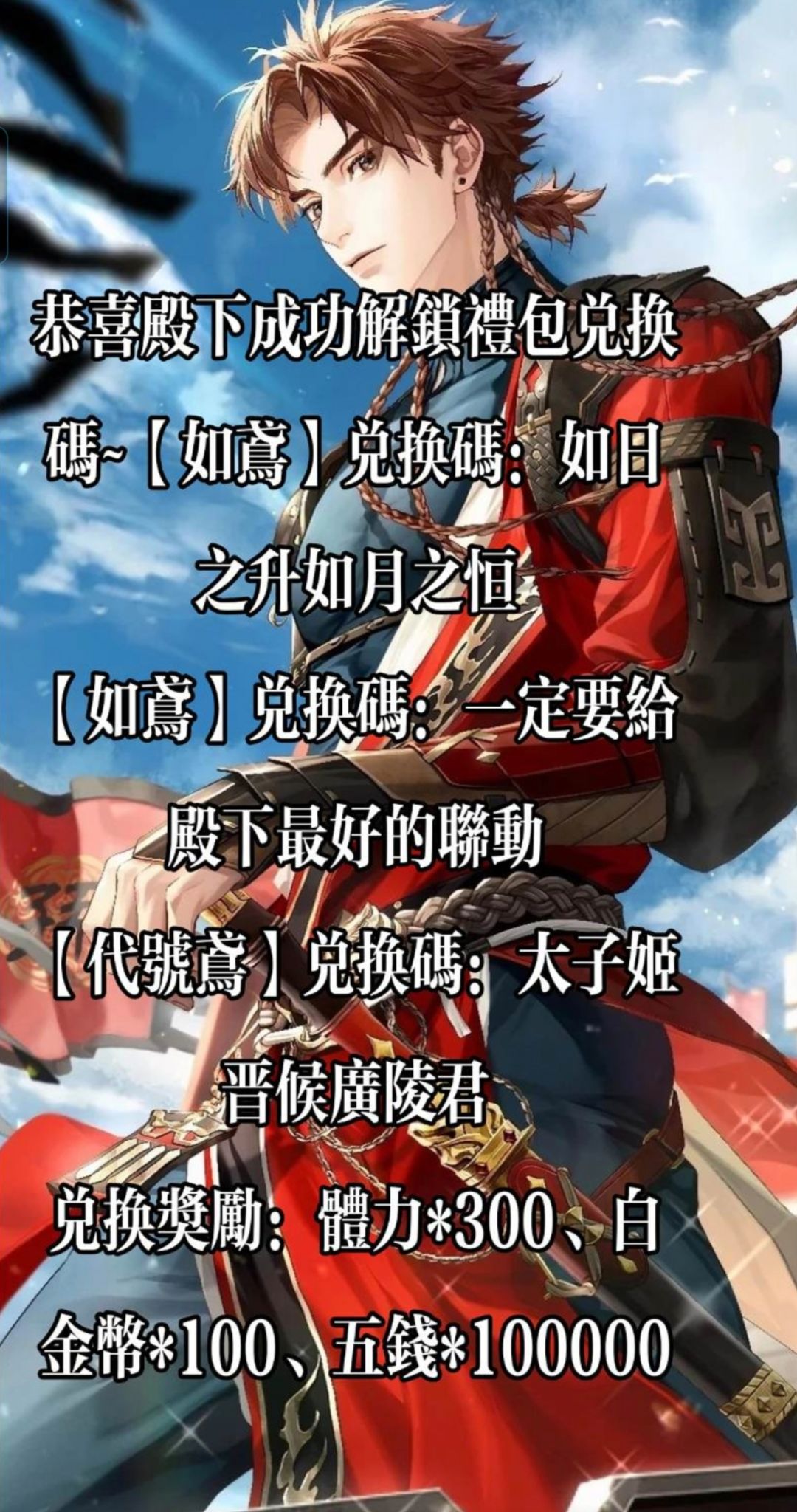 最新兑换码:(兑换码小编帮大家放在下方,自取喔) 兑换码:山川不改日月常悬 奖励:10个符传(截止10月25日) 兑换码:鸢起广陵 奖励:10个符传(截止10月25日) 进🐧群(605724215)第一时间获取最新游戏资讯还有很多隐藏兑换码等你。 兑换码:一个喜欢鸢的人做什么都会成功的 奖励:10个符传 #如鸢 #如鸢兑换码 #如鸢归鸿公测定档0926 #如鸢公测创作征集令