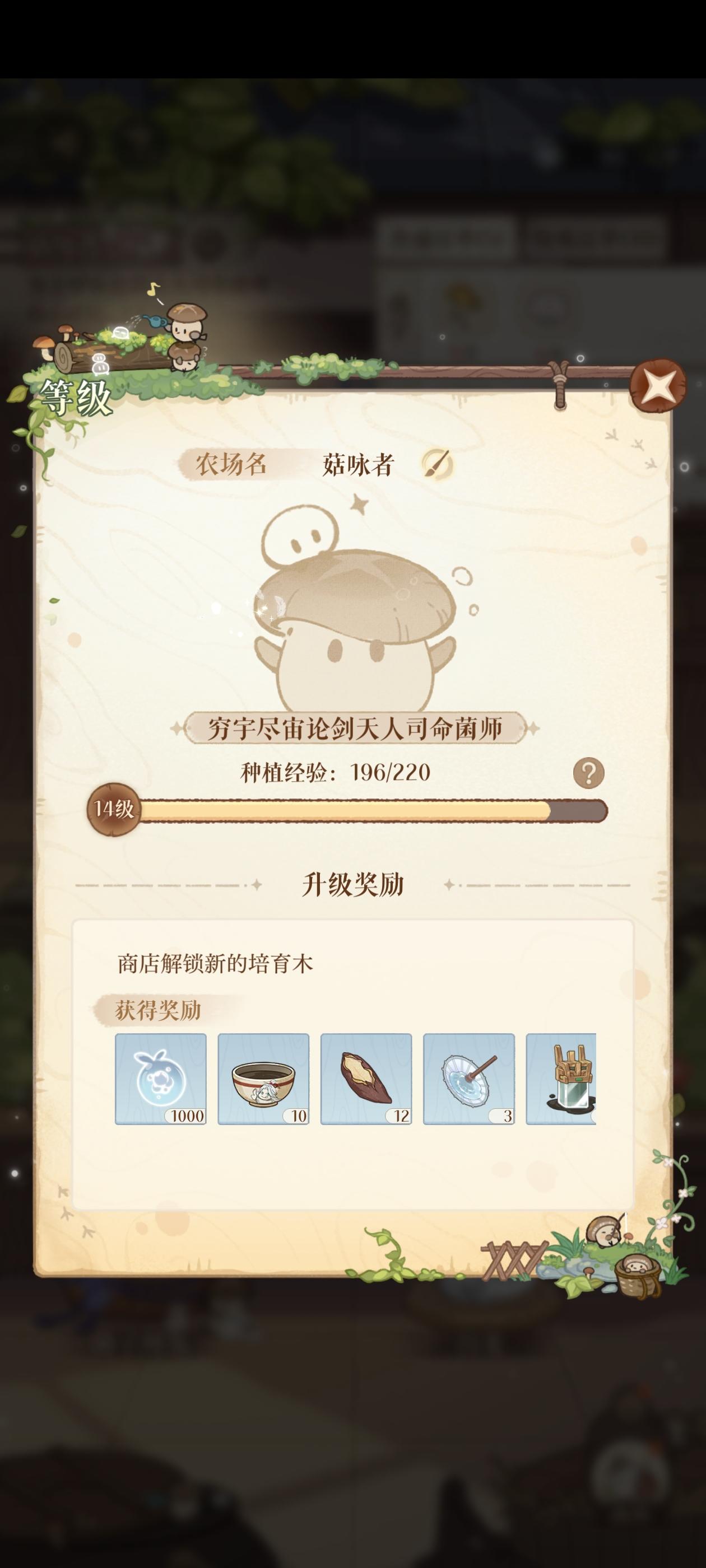 主号活动一开就在肝(走了不少弯路,今天才弄完,花了几十个白金币)一号小号1月5日开肝(没花白金币)二号小号1月9日开肝(没花白金币)三号小号1月11日开肝(没花白金币)太无聊了种蘑菇还算有意思,越种越上手,想着接个单但是无人问津(代肝选择应该很多,而我只是一时兴起挂上去的,这也在所难免),一号小号发帖要来的,二号三号小号自己创的(卡主线浪费了几天时间),一般这个蘑菇种着种着就会卡进度,于是