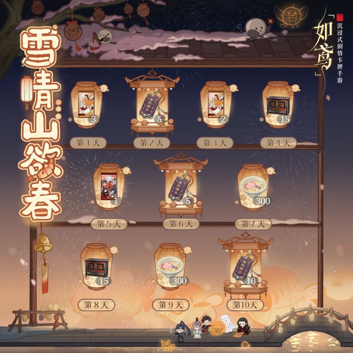 恰封新年,广陵王府收到不少年节贺礼。王府礼官已将大部分礼品收归入库,并整理出以下重要物资,请殿下过目。再多的物资和节礼,只是锦上添花。最重要的,依然是殿下在绣衣楼指挥坐镇。只要殿下在,新一年的绣衣楼,必将马跃新程,山海无阻。🎁签到时间:2月12日维护后-2月25日23:59🧧签到奖励: 第一天:五福小红包*3第二天:符传*5第三天:十全大红包*2第四天:行装匮*15第五天:吉祥珍品
