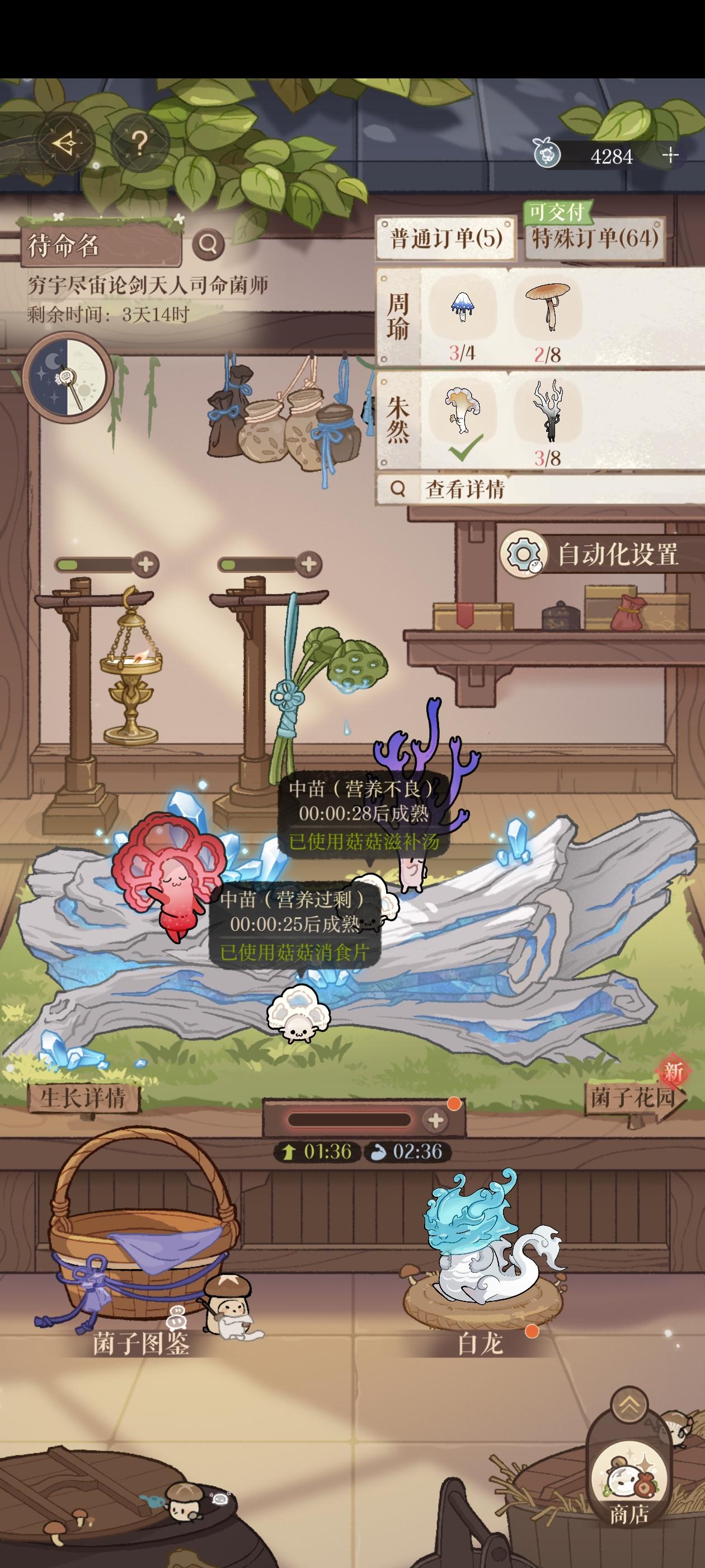 长出了三个菌子,一个不生病长大,另外两个分别营养不良和营养过剩