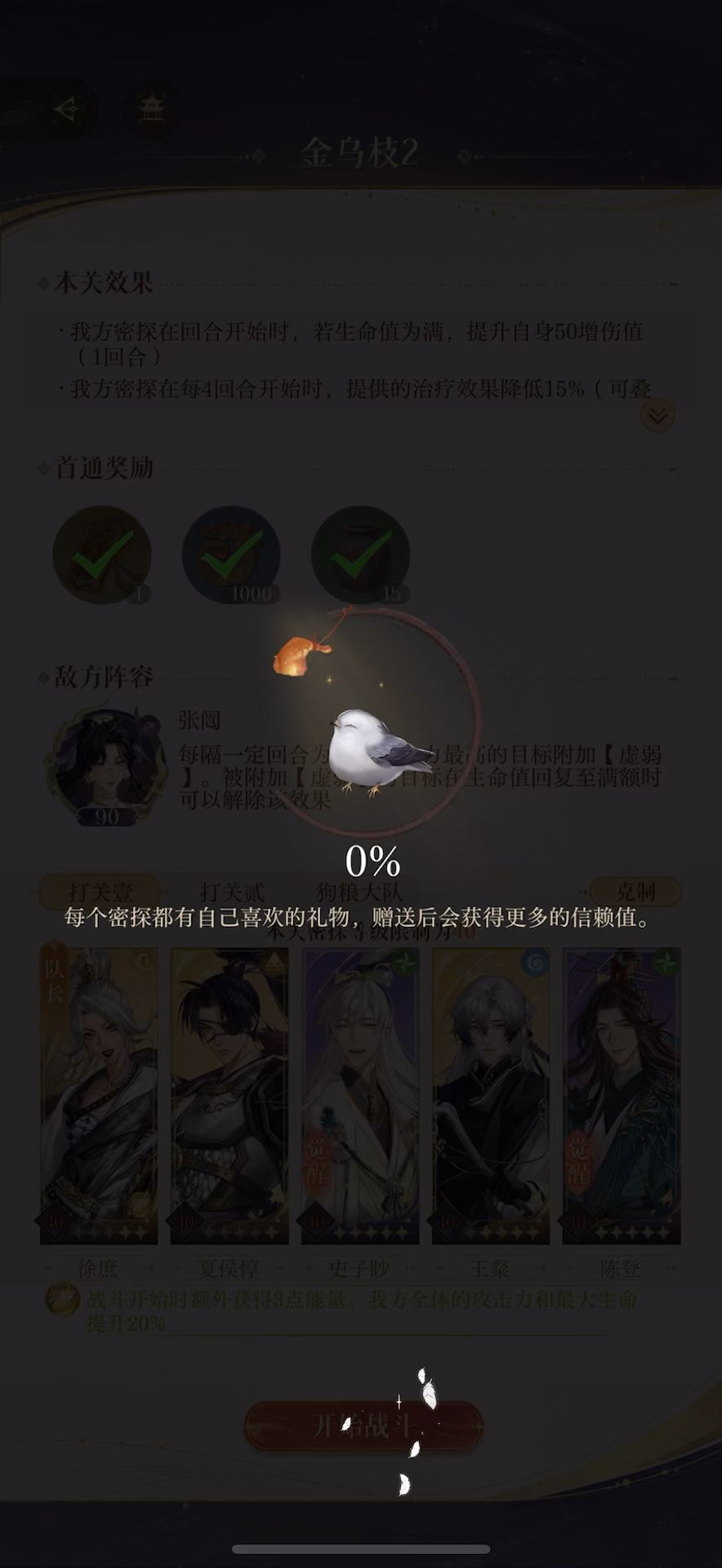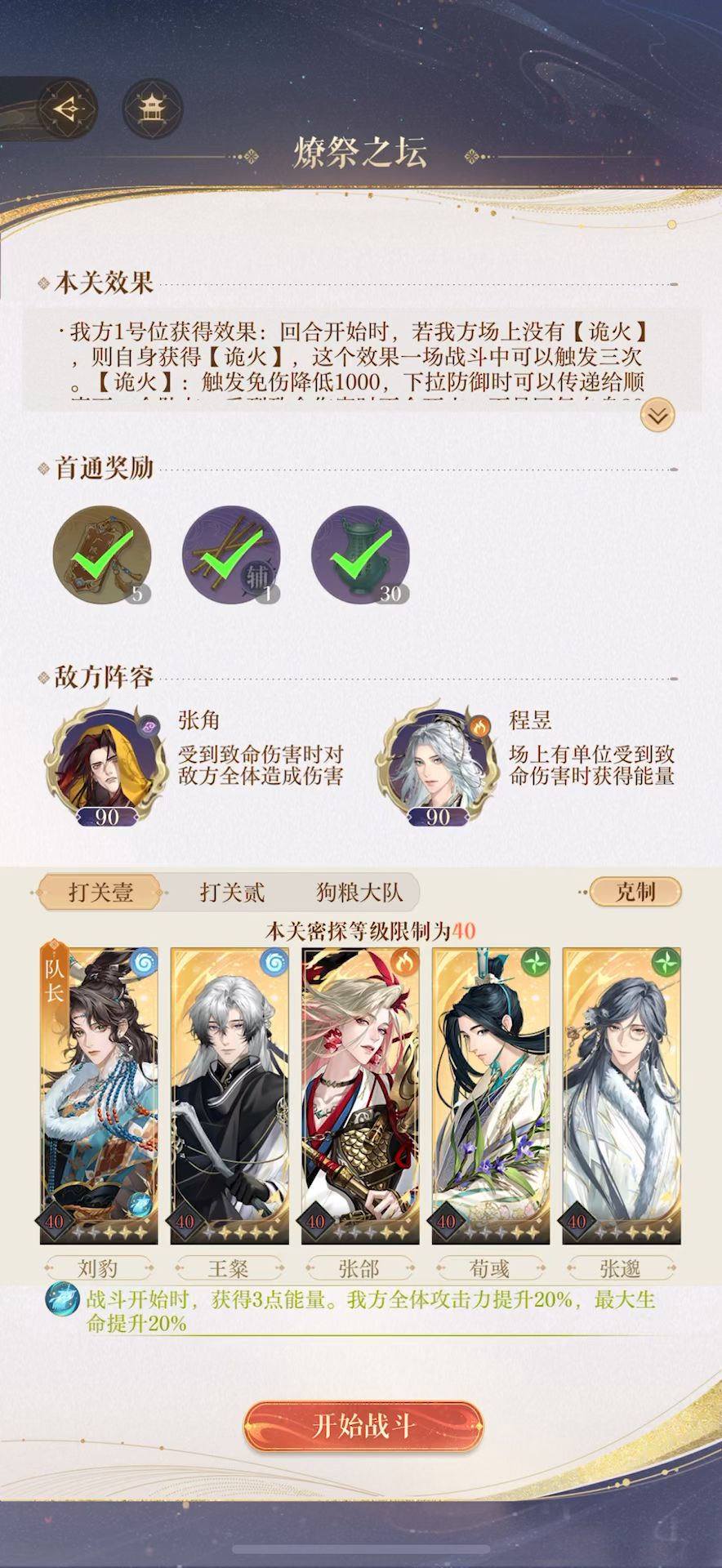 练度在评论区 三 琴式盘周瑜 四 能量盘周瑜,两回合核爆队,追着有两把交叉剑图标的怪砍就过了 视频仅供参考,练度可降。