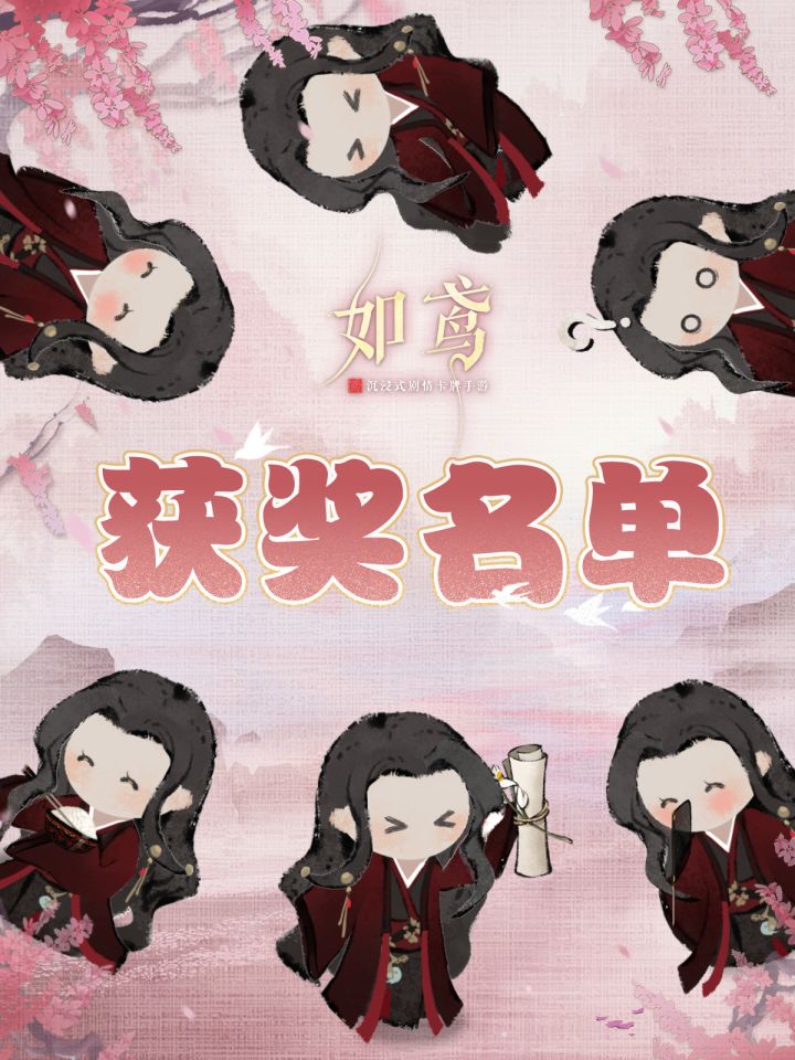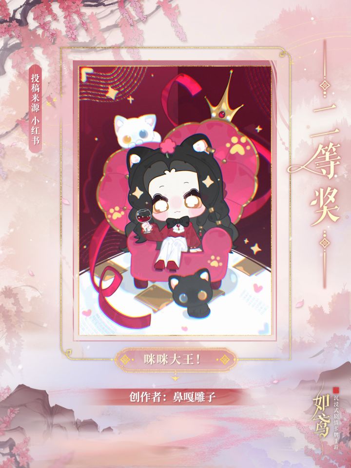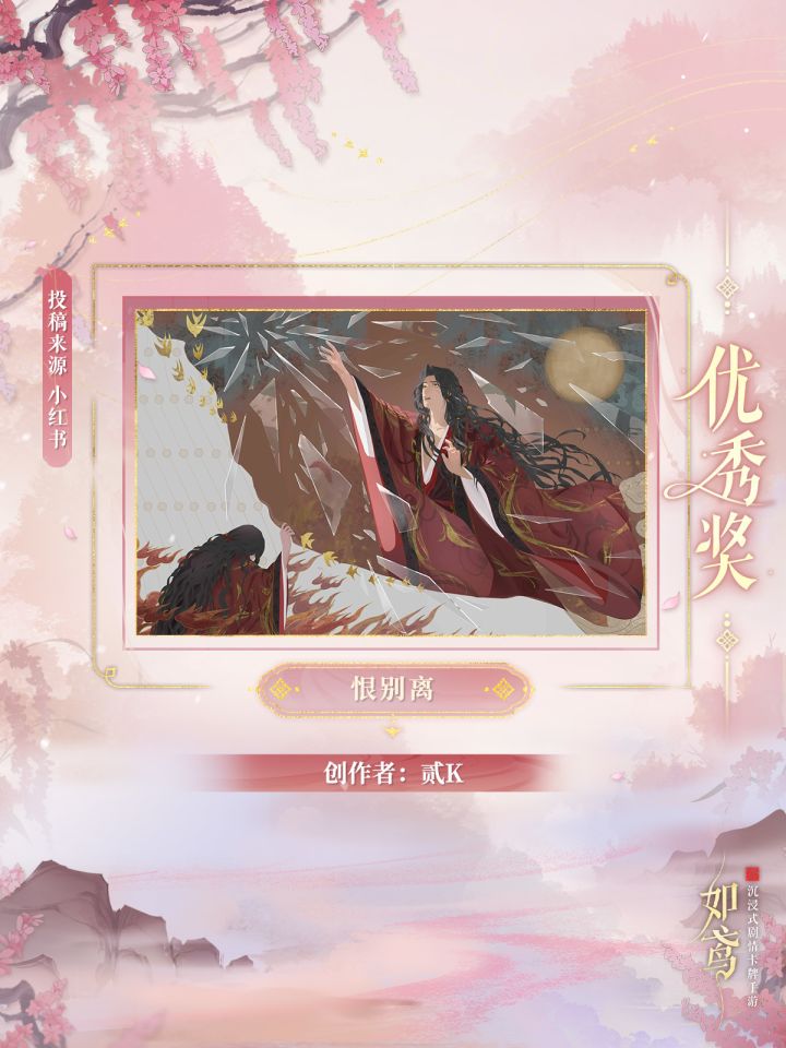 感谢殿下留下的瞬间,所有作品均已收入楼内存档。此处收集了部分优秀作品,邀请殿下欣赏。对应作者及作品名如下——青果木亦《恨天地生万物而非仅你我》妖匣子《宴我情人,喰我痴肠》鼻嘎雕子《咪咪大王!》春甫《仙人抚我顶》贰K《恨别离》叫我三三就好《霸道先帝强势追爱》※请一等奖、二等奖、优秀奖的获奖殿下,请留意对应平台如鸢官方账号的私信,确认更多信息。※相关信息收集完毕后,实物奖励将通过邮