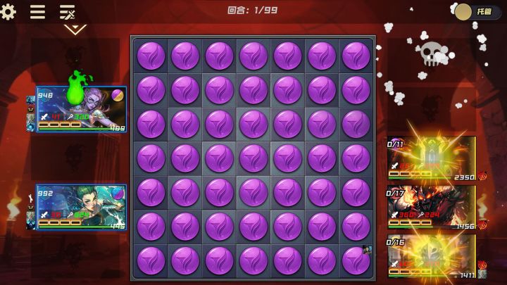 玩家:威,ID:15879为了帮老大留住新手玩家,本游做大做强,特开此贴,讲些消除技巧。先说下基本知识,总共有6种心能:正义心能(黄色),傲慢心能(紫色),理智心能(蓝色),本能心能(绿色),愤怒心能(红色),混沌心能(白色),其中除了混沌心能能为各色随从回能回怒之外,其他5种只能为对应颜色的随从回能回怒。消除的话,移动一个心能,只要让同种颜色心能横着或竖着连成3个或3个以上就能实现消除,若