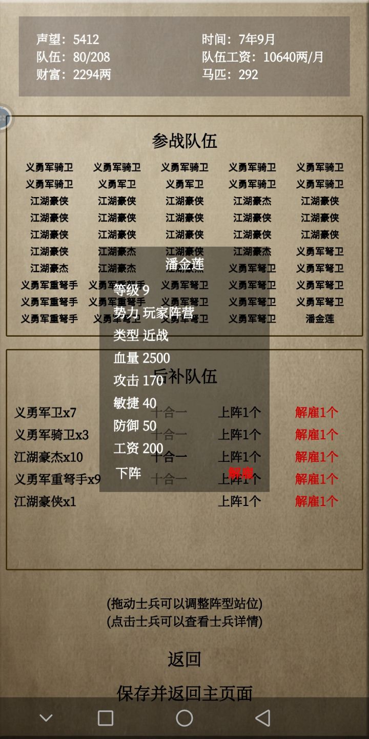 6,自己势力的将可以根据声望,兑换或者采访,凑了合并。