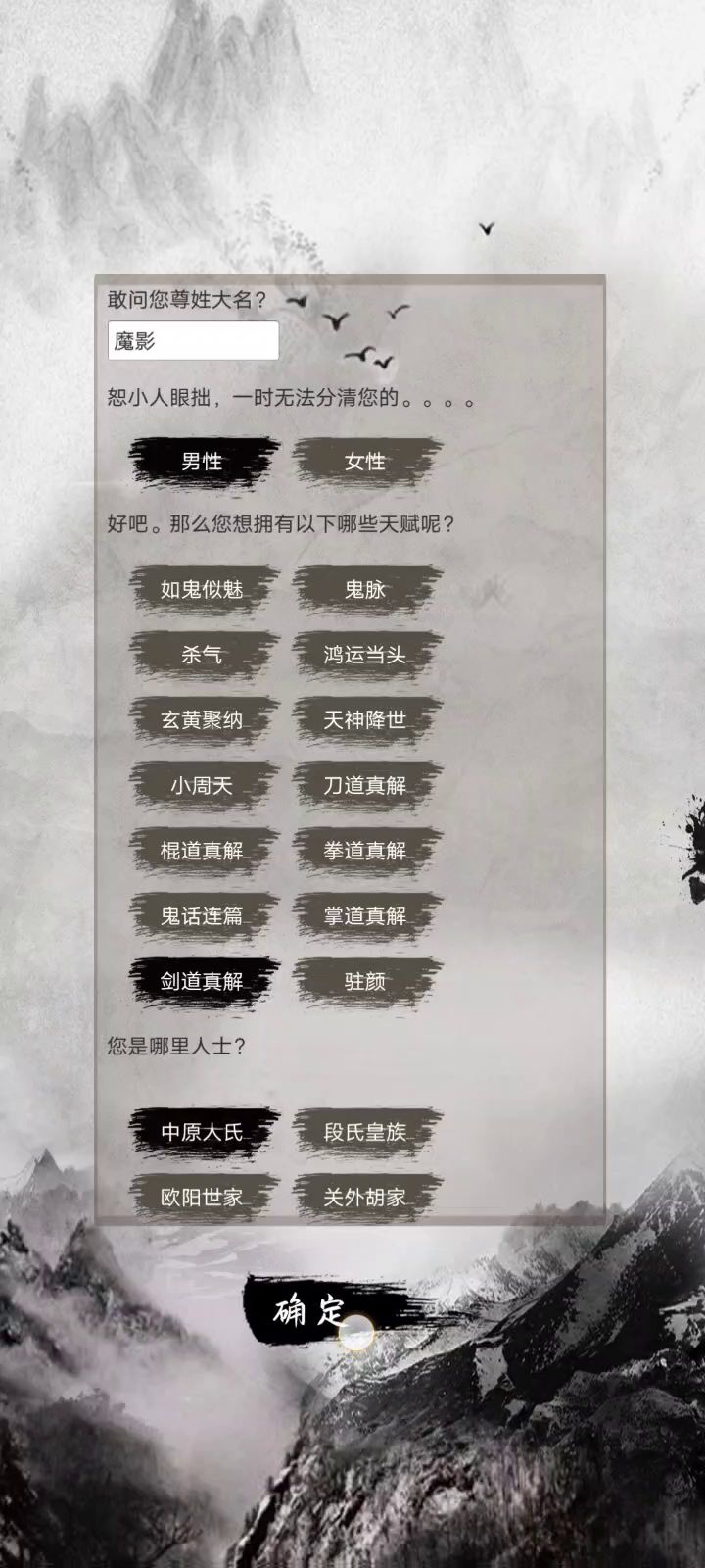 建角色,各个选项点完了,点确认没反应,狂点确认没反应,狂点确认各种没反应