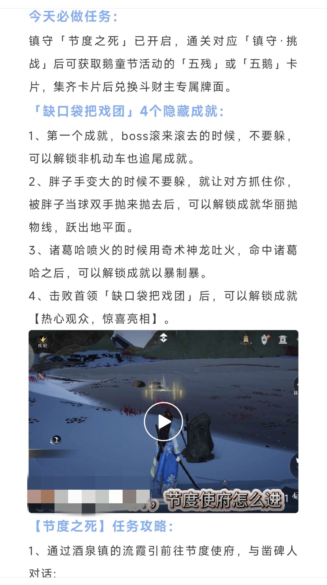 燕云十六声节度之死任务攻略,【缺口袋把戏团】4个隐藏成就,节度之死任务攻略,节度之死讲了什么,节度之死解析,节度之死剧情太烂,节度之死怎么开启,节度之死全是BUG,节度之死刺客是谁,节度之死如何恢复,节度使之死,节度使之死剧情,节度使府界碑位置,节度使府怎么进,节度使结局。鹅童节卡牌解锁!野外首领缺口袋把戏团4个隐藏成就,以暴制暴成就,成就以暴制暴,成就华丽抛物线跃出地平面,华丽抛物线跃出地平面成