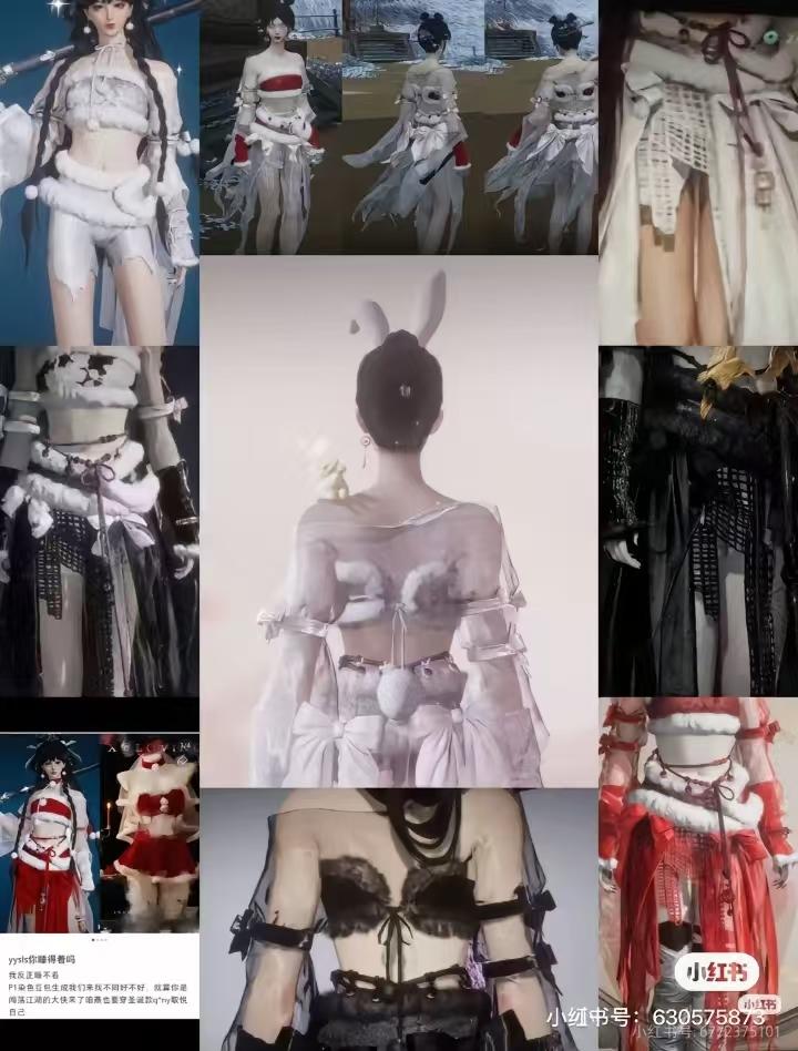 不排除这个衣服有萌的正常加裤子的穿搭,但是这个渔网,这个漏底裤,纱可以染成透明,这个蝴蝶结,毛边家露腰露腿,已经有人通过这个服装开始涩情化女号了,正常搭配玩家没理由发挥搭配之力为这件衣服缺少的布料多花心思,多花钱后面那几张图我晃一眼我以为是那个黄色网站的3d区人物跑出来了,早说我下的是情趣游戏啊。当然可以不用染成那样,但是不染成那样不代表这种染色不存在,也改变不了后面就是一根绑带的设计以及超短裤