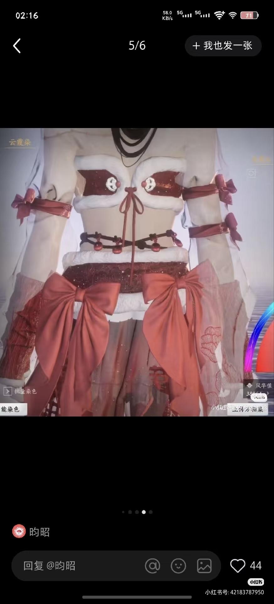 不排除这个衣服有萌的正常加裤子的穿搭,但是这个渔网,这个漏底裤,纱可以染成透明,这个蝴蝶结,毛边家露腰露腿,已经有人通过这个服装开始涩情化女号了,正常搭配玩家没理由发挥搭配之力为这件衣服缺少的布料多花心思,多花钱后面那几张图我晃一眼我以为是那个黄色网站的3d区人物跑出来了,早说我下的是情趣游戏啊。当然可以不用染成那样,但是不染成那样不代表这种染色不存在,也改变不了后面就是一根绑带的设计以及超短裤