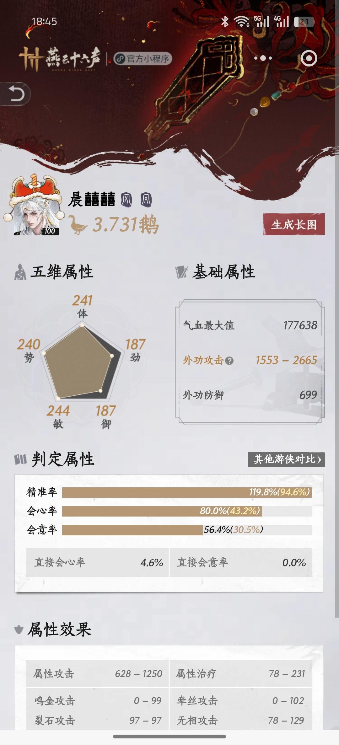 最大外功攻击12条会心率10条精准率4条敏4条劲4条神力词条6条