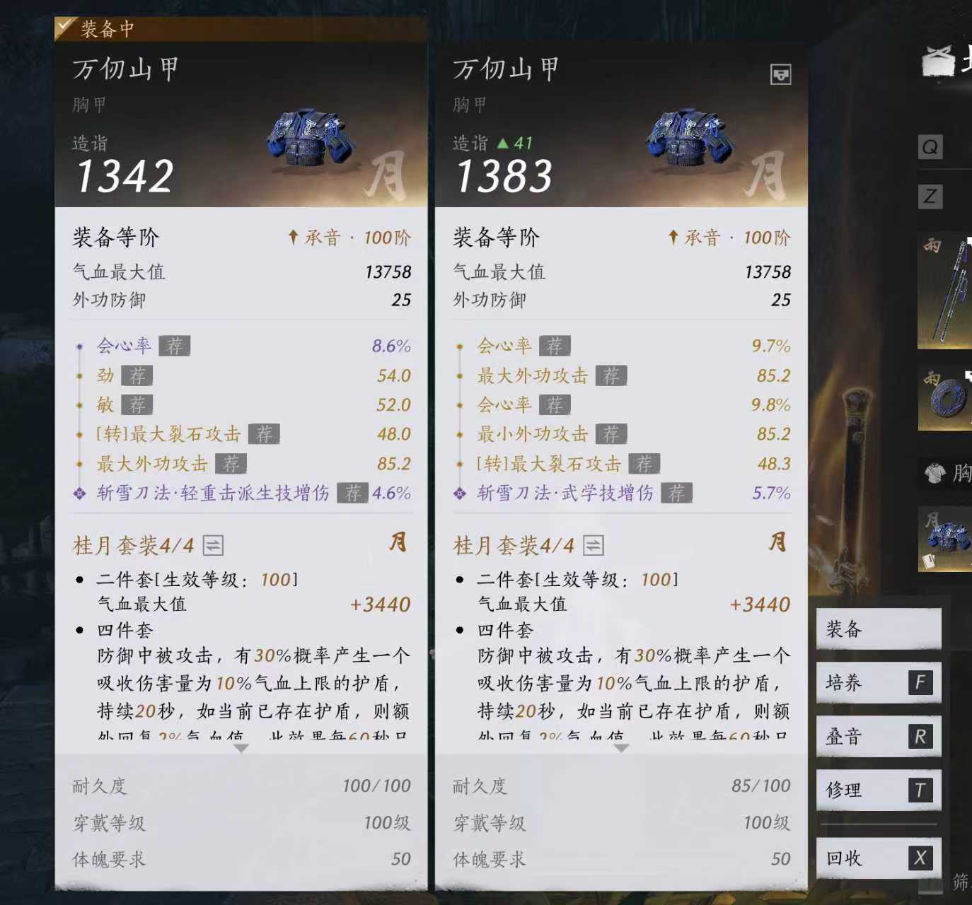 这哪个装备可以用,玩的唐横刀,现在会心率66,穿上右边的69
