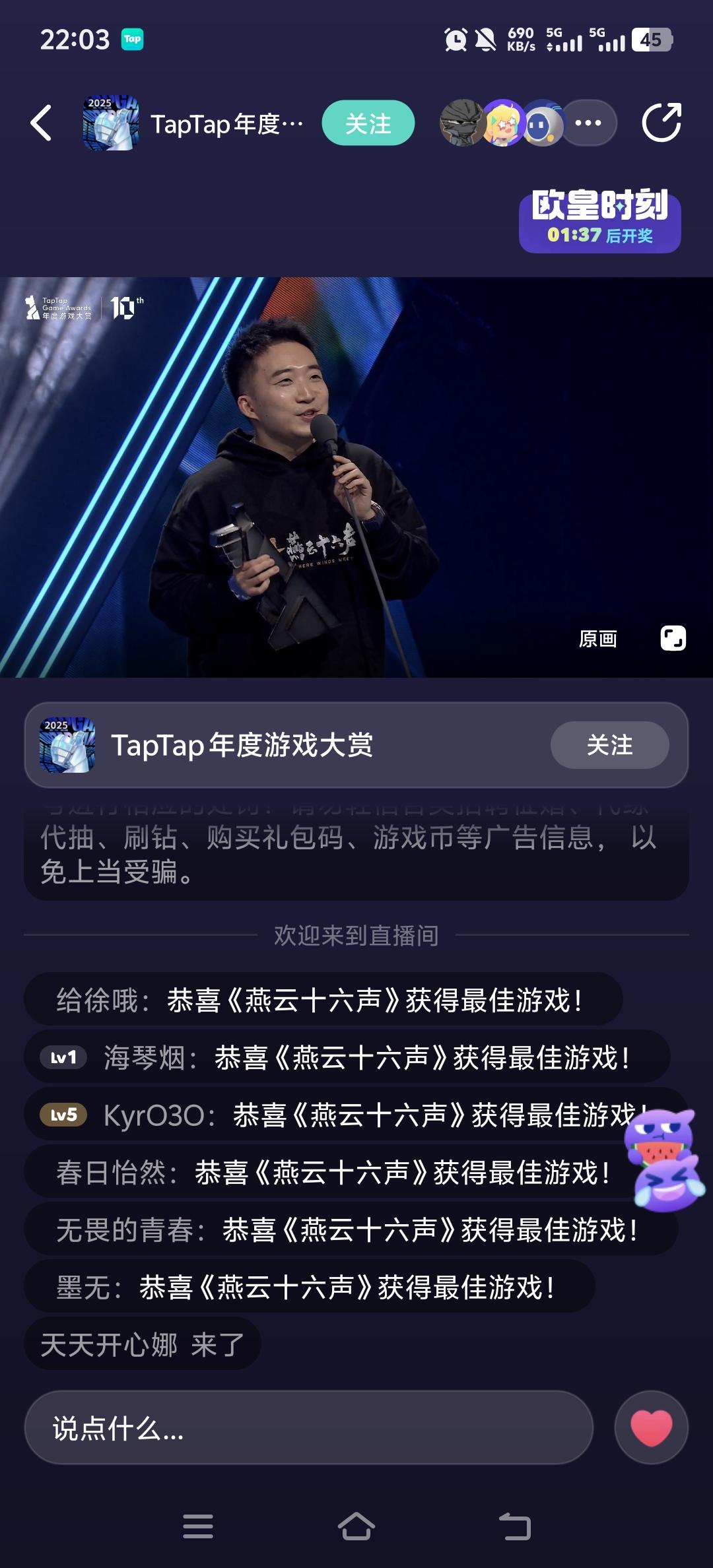 恭喜燕云十六声获得tap最佳游戏#燕云十六声手游 #你玩的游戏入围啦