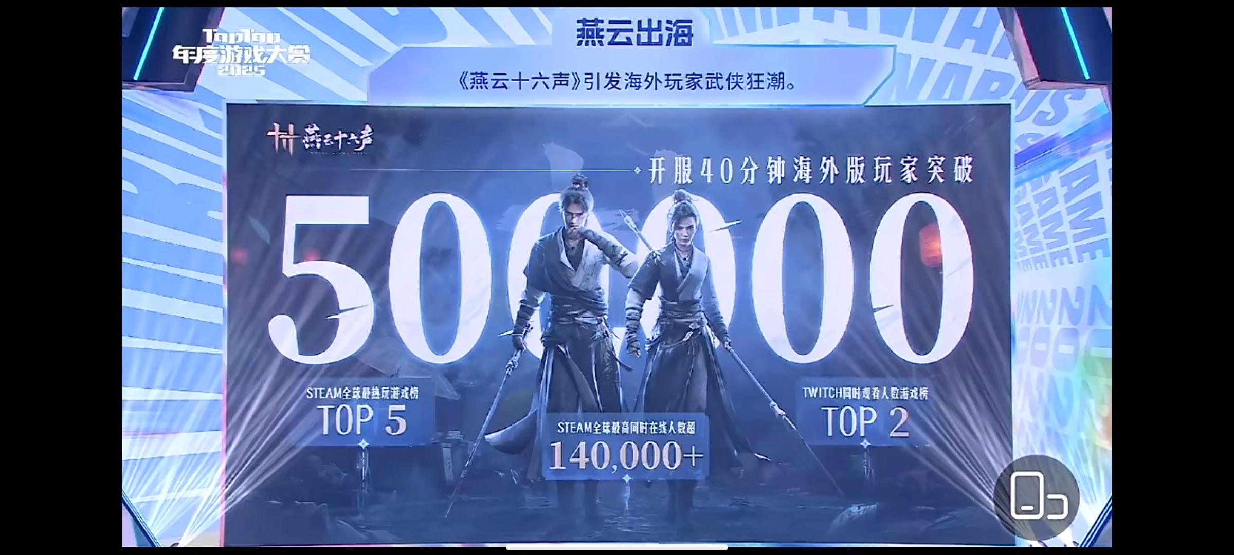 恭喜燕云十六声获得tap最佳游戏#燕云十六声手游 #你玩的游戏入围啦