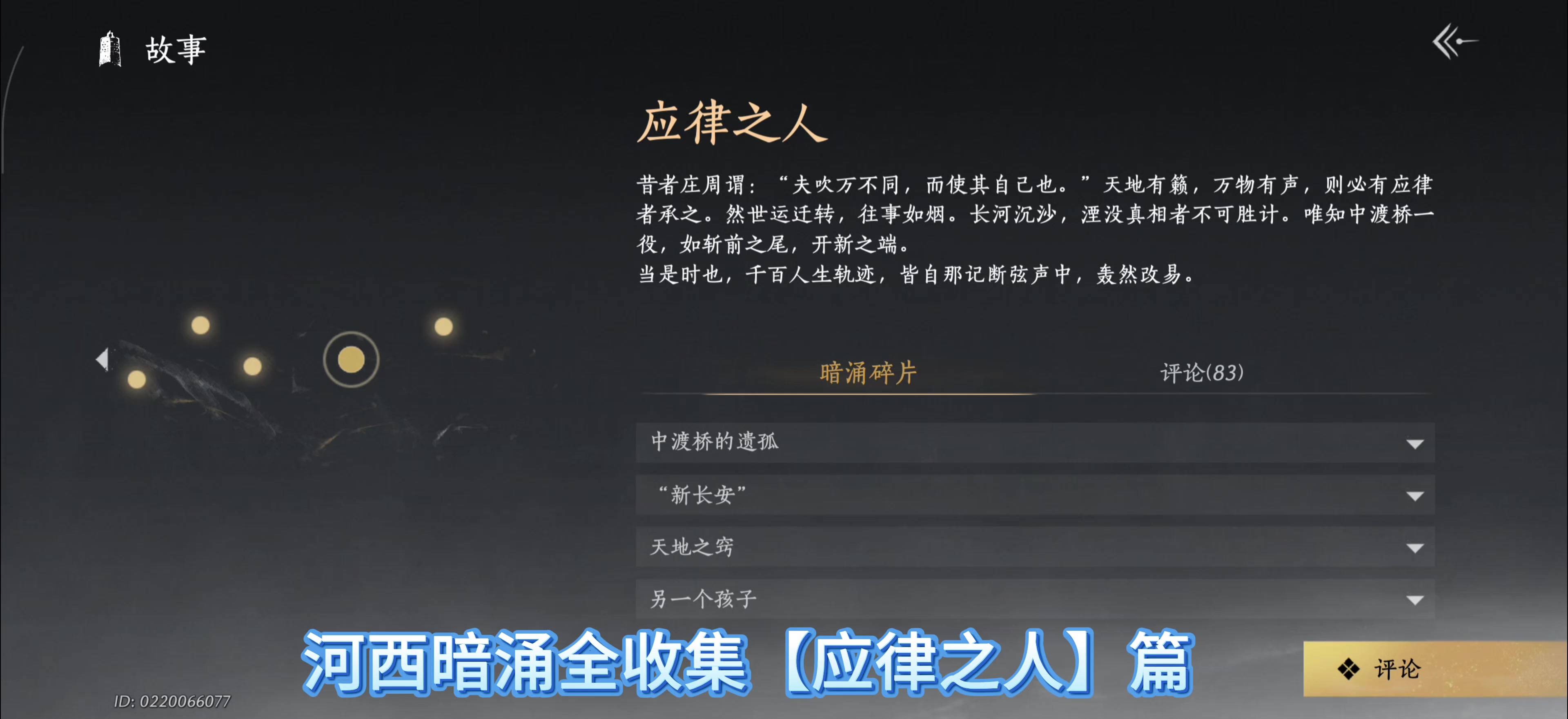 燕云十六声河西暗涌全收集【应律之人】篇,中渡桥的遗孤收集,暗涌中渡桥的遗孤,中渡桥的遗孤暗涌,新长安收集,暗涌新长安,新长安暗涌,暗涌天地之窍,天地之窍收集。天地之窍暗涌,暗涌另一个孩子,另一个孩子收集,另一个孩子暗涌,应律之人收集,暗涌应律之人#游戏种草计划 #燕云十六声 #燕云十六声攻略 #游戏推荐 #游戏日常