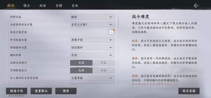 琢磨出来的手机和电脑键位,以及剧情体验。 路牌聊天好友消息全部关闭,止戈同游门派家业一点不碰。 九剑配奶扇,蛤蟆功配吹笛子,难度选简单,卸势关掉,打架先吹笛子或蛤蟆功,然后九剑哐哐一通乱点,掉血了易武奶扇,再哐哐一通乱点,循环往复。 做阴森恐怖的任务用清河强者加驴头外观,变得全程欢愉。平常就初出茅庐外观配刀哥的刀和红线的绳。