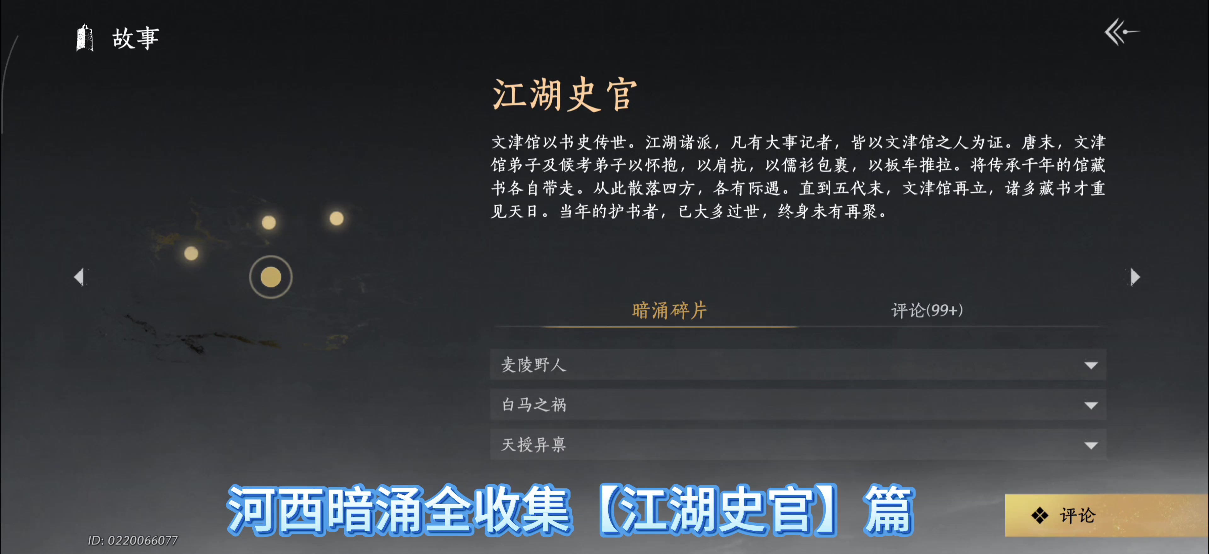 燕云十六声河西暗涌全收集【江湖史官】篇,麦陵野人收集