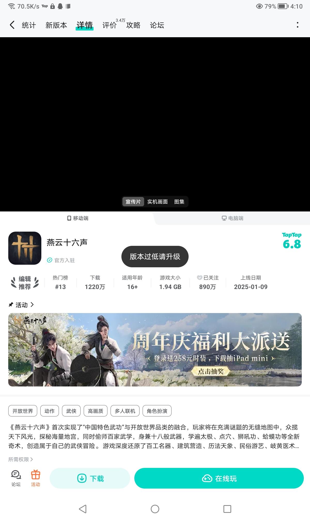 为什么等了一整天维修更新(不是说正常更新大版本半小时就结束吗?????)现在更新到最新版本还进不去,难不成是我手机版本不够吗,何意味来给个解释,对云玩家这么不好是想怎么样
